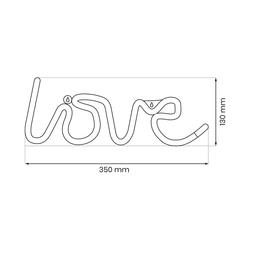 Neonowy napis love, w rozmiarze 35*13cm. Baterie: 3AA (brak w zestawie).