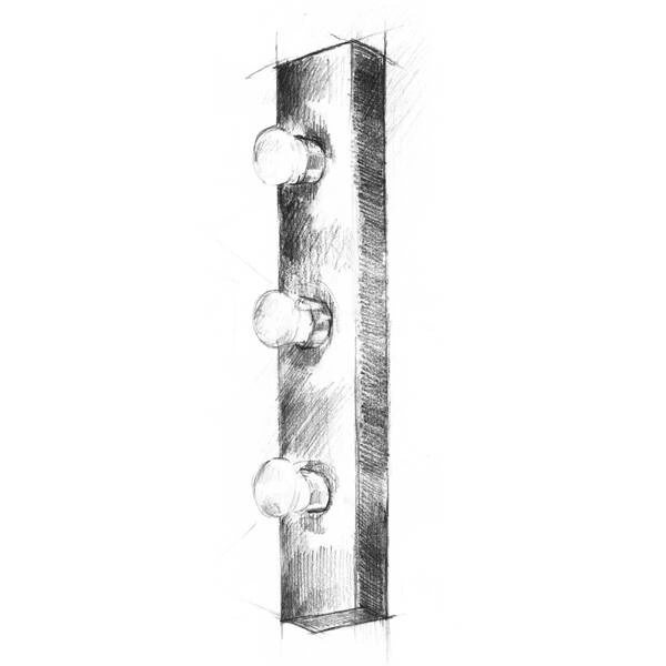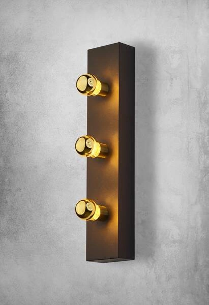 Kinkiet inspirowany światem kultury i sztuki. Na prostokątnej listwie umieszczono trzy źródła światła.