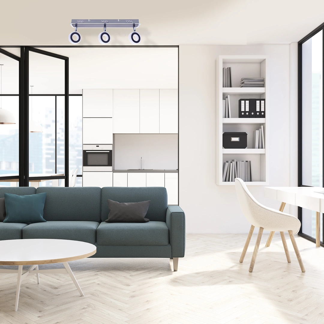 Lampy z linii SOLE charakteryzuje modernistyczny sznyt i jednocześnie minimalistyczna forma. Oświetlenie z tej kolekcji to połączenie bieli, czerni i chromu oraz geometryczne kształty. Takie wzornictwo doskonale sprawdzi się w minimalistycznych pomieszczeniach, na przykład w salonie lub w sypialni.