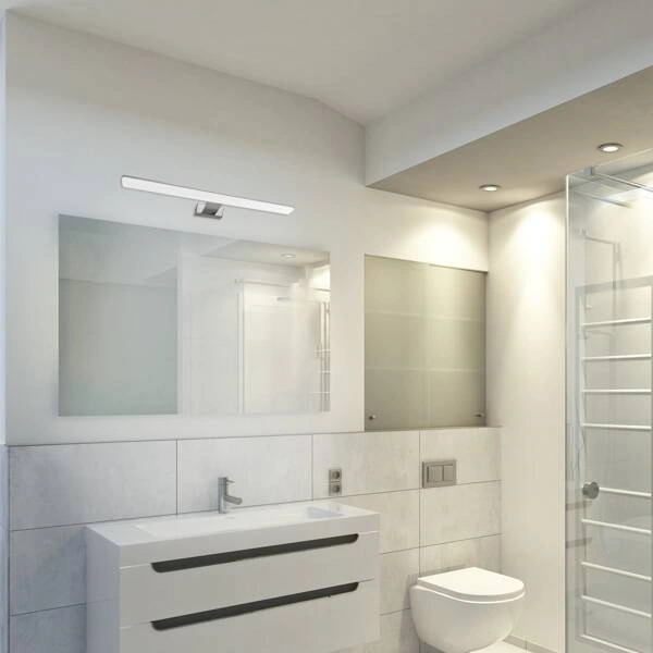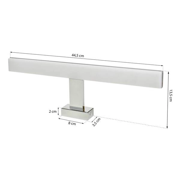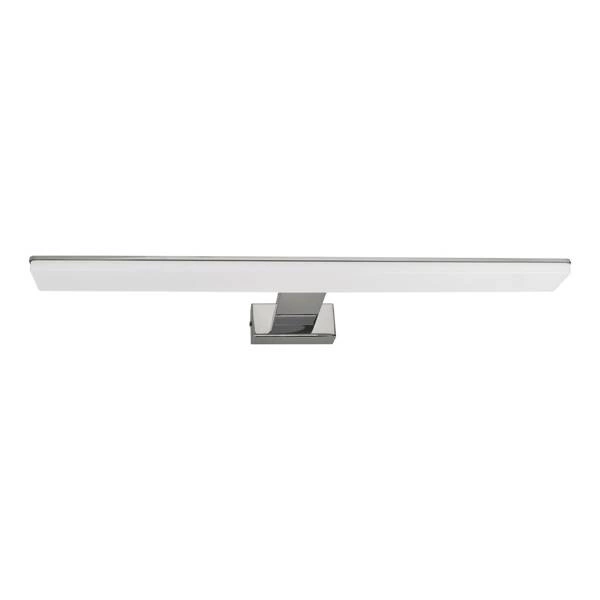 Nowoczesny kinkiet BAY to lampa, która – nieco wbrew minimalistycznej formie – posiada niezwykle szerokie spektrum zastosowań. Sprawdzi się ona wszędzie tam, gdzie potrzeba dodatkowego, mocnego oświetlenia punktowego, jednak najbardziej rekomendowaną przestrzenią jest łazienka. Kinkiet BAY ma formę płaskiej, chromowanej listwy o długości 14 centymetrów, zamocowanej na niewielkim wsporniku montowanym do ściany na prostokątnej rozecie. Źródło światła w postaci żarówki LED znajduje się w dolnej części listwy, dzięki czemu lampa doskonale oświetla wszystko, co znajduje się bezpośrednio pod nią. Doskonale nadaje się zatem do zamontowania nad lustrem i umywalką lub we wnęce, w które wyeksponowane zostaną łazienkowe akcesoria.