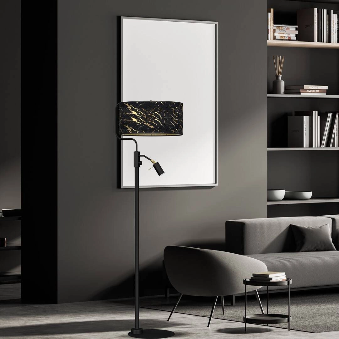 • Lampa stojąca w kolorze czarno-złotym z dodatkowym źródłem światła MLP7300