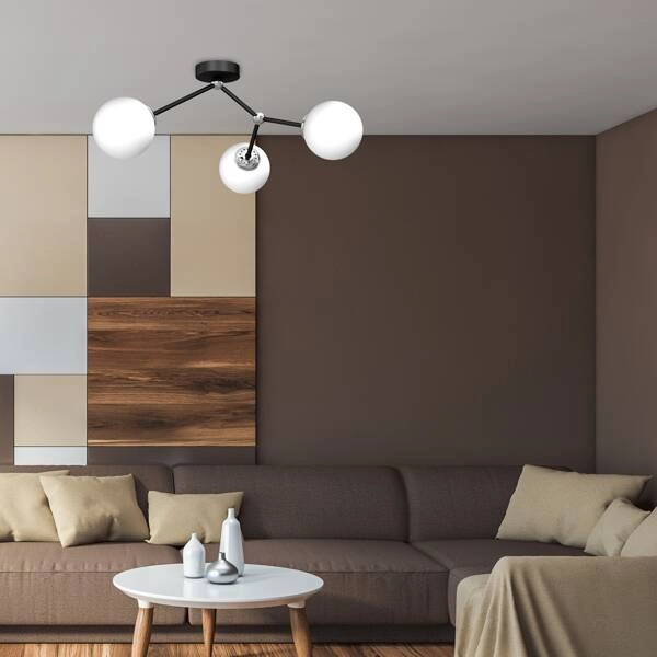 Niezwykle stylowa kolekcja lamp JOY z pewnością przypadnie do gustu miłośnikom klasycznych rozwiązań aranżacyjnych w nieco odświeżonej, bardziej nowoczesnej odsłonie. W skład tej rodziny produktów wchodzą 4 produkty – podwójny kinkiet i trzy lampy sufitowe (z dwoma, trzema i czterema źródłami światła). Największym atutem każdego z tych modeli są efektowne, kuliste klosze z białego szkła, osadzone na prostych, metalowych ramionach w kolorze czerni lub bieli. Dodatkowego uroku i elegancji nadają im złote lub srebrne akcenty na łączeniach ramion, tuż przy kloszach i rozetach.