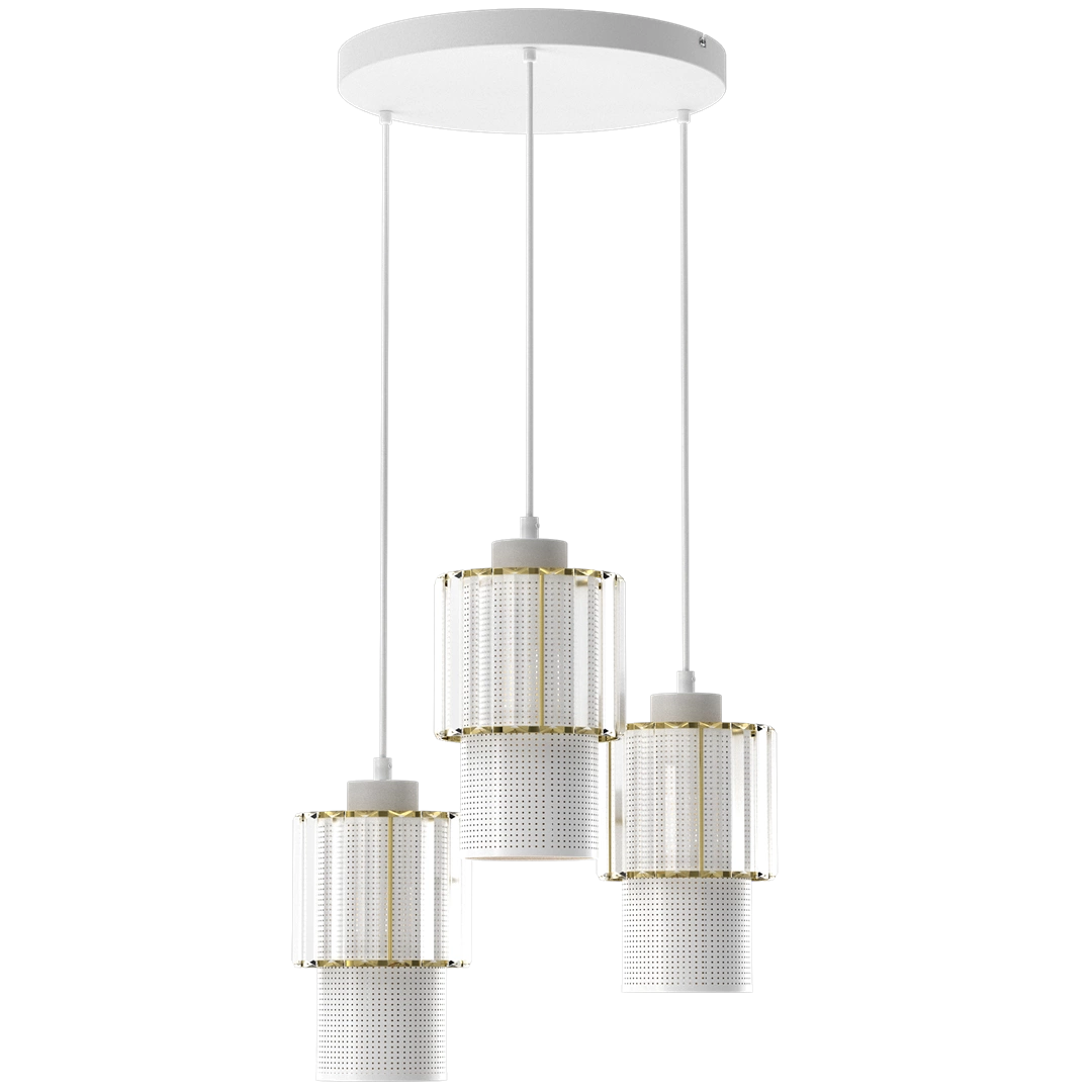 Lampy zwisające z kryształowym kloszem ze złotym wykończeniem, białym abażurem z perforacją i złotym środkiem sprawią, że żadna przestrzeń nie będzie już wyglądała nudno. Dzięki ponadczasowym połączeniom kolorystycznym i klasycznym proporcjom, lampy z tej rodziny idealnie sprawdzą się w dużych i otwartych przestrzeniach. Doskonale przyciągają wzrok i staną się naturalnym i najciekawszym akcentem w pomieszczeniu.
