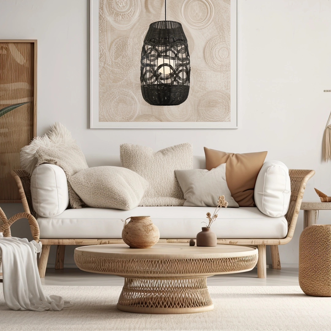 Kolekcja ARONA to linia lamp, która przywołuje klimat boho, łącząc go z nowoczesnym designem. Dostępna w dwóch wariantach kolorystycznych - białym z rattanem oraz czarnym - ARONA doskonale wpasowuje się w wnętrza boho, dodając im uroku i stylu. Biały + Rattan - Wykończenie białe z dodatkiem rattanu to połączenie, które emanuje delikatnością i naturalnym urokiem. Elementy metalowe w połączeniu z rattanem tworzą lampy o wyjątkowym charakterze, które doskonale komponują się z wnętrzami boho. To oświetlenie nadaje pomieszczeniom ciepła i przytulności, zachowując jednocześnie nowoczesny wygląd. Czarny - Wykończenie czarne jest symbolem elegancji i nowoczesności. Lampy z kolekcji ARONA w czarnym wydaniu zachowują swój nowoczesny charakter, co czyni je doskonałym wyborem do wnętrz boho o bardziej nowoczesnym akcencie. To oświetlenie dodaje pomieszczeniom wyrazistego kontrastu i stylowego designu. Kolekcja ARONA to nie tylko estetyczne lampy, ale także praktyczne i wszechstronne. Bez względu na wybór kolorystyki, te lampy wniosą do Twojego wnętrza niepowtarzalny charakter, nadając mu boho i nowoczesny styl. Wnętrza boho są pełne ciepła i wyjątkowej atmosfery, a lampy ARONA doskonale współgrają z tym klimatem, nadając mu wyjątkowy urok.