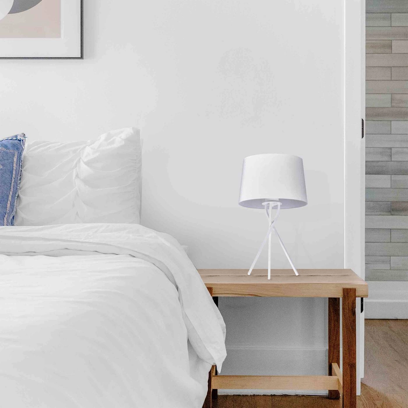 Ta niewielkiej budowy lampka (43 x 26 cm) została wyposażona w uniwersalnej budowy abażur, który obleczono wytrzymałym materiałem z włókna sztucznego. Klosz o wymiarach 26 x 16 cm tłumi światło sprawiając, że jego wiązki padają rozproszone w górę oraz w dół, dzięki czemu nie mamy mocno nasilonego światła na wysokości oczu.