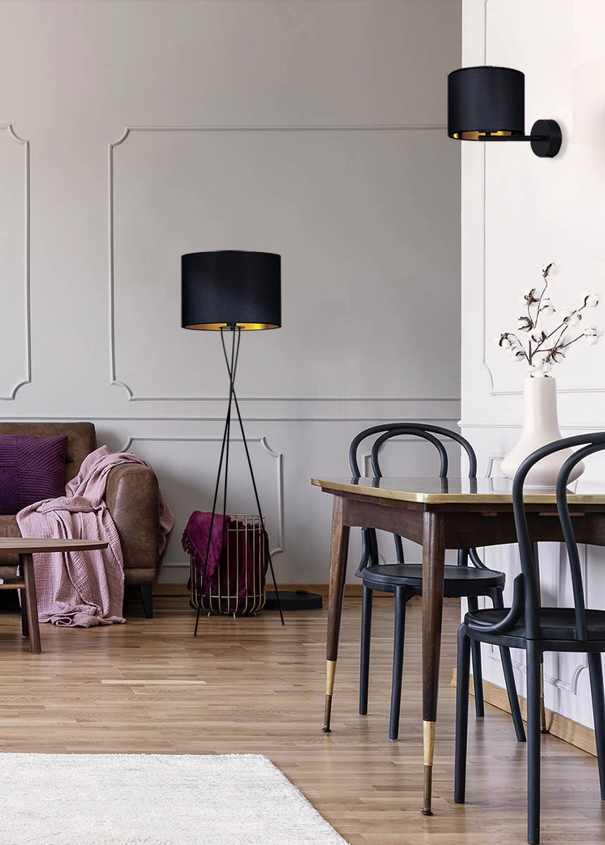 Elegancki kinkiet ścienny K-4328 w kolorze ponadczasowej, uniwersalnej czarni z abażurem ze złotym wnętrzem to propozycja oświetlenia zadaniowego do Twojego wnętrza. Lampa o szerokości 20 cm sprawdzi się do doświetlenia, na przykład podczas czytania książki. Samodzielnie sprawdzi się do stworzenia przyjemnej atmosfery lub jako oświetlenie główne w mniejszych pomieszczeniach. Zamontuj ją w salonie czy sypialni, urządzonych w stylu glamour, nowoczesnym, czy klasycznym.