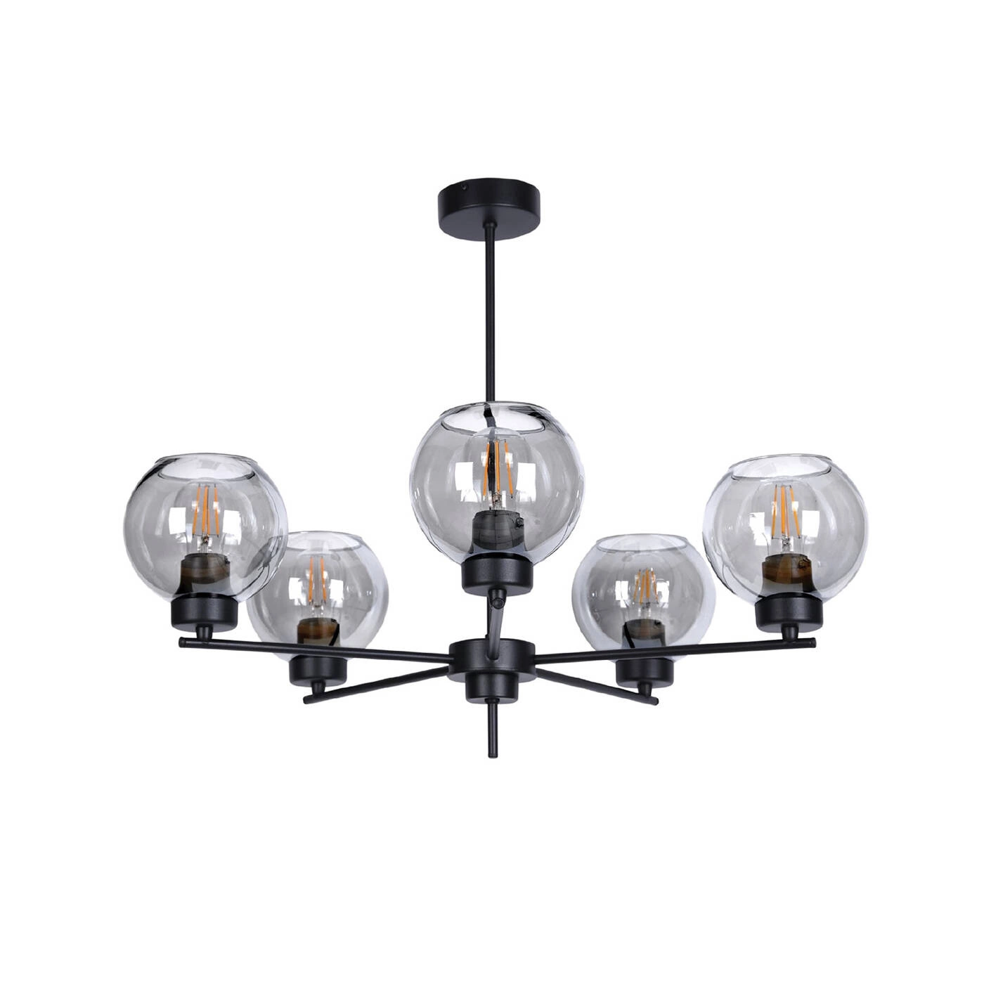 Minimalistyczny design, na który składa się standardowy, kulisty kształt kloszy i uniwersalny, czarny kolor lampy sprawia, żyrandol idealnie wypełni wnętrza z ciemnym drewnem, metalicznymi dodatkami czy marmurem. Świadczy to o uniwersalności i ponadczasowości lampy i gwarantuje dopasowanie do wnętrza niezależnie od jego aranżacji.