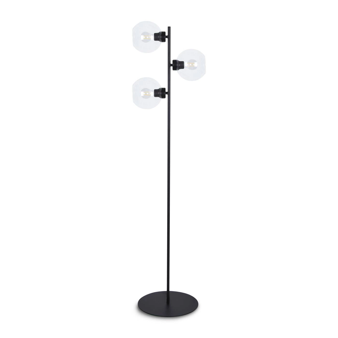 Lampa została stworzona z najlepszej jakości metalu i szkła. Wychodzi z okrągłej podstawy o średnicy 36 cm i pnie się ku górze na wysokość 164 cm. Jej klosze skierowane są bezpośrednio na boki, znajdując się w jednej płaszczyźnie, dzięki czemu zajmuje objętościowo mniej miejsca i można ją ustawić bliżej ściany. Choć prosta w budowie, wykonana jest w sposób precyzyjny i estetyczny, a swoją solidnością może przyciągnąć niejedno oko oraz stanowić niewątpliwie element dekoracyjny pomieszczenia.Lampa K-4859 posiada trzy źródła światła, a dzięki przejrzystym kloszom, światło staje się niczym niestłumione i doskonale może oświetlić nawet te większe przestrzenie.