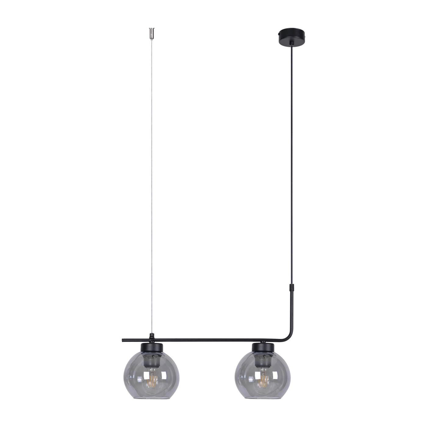 Lampa K-4880 posiada dwa źródła światła wyposażone w uniwersalny gwint E27. Dzięki możliwości wymiany żarówek, każdy może dostosować oświetlenie do własnych preferencji, w zależności od tego, czy woli ciepłe, zimne, a może neutralne światło. Materiały wykorzystane do budowy lampy to wysokiej jakości metal użyty do czarnej konstrukcji oraz wytrzymałe szkło, zastosowane do budowy kloszy. Szklane kule barwione na delikatny odcień grafitu sprawiają, że światło staje się lekko przytłumione. Dzięki temu tworzą na ścianach ciekawy, tajemniczy klimat, a zarazem są przyjazne dla oka i nie męczą go wieczorową porą. Kolorystyka lampy pozostaje zachowana w klimacie monochrome, dzięki temu staje się ona uniwersalnym dodatkiem do wnętrza. Znajdzie zastosowanie zarówno w kolorowej, zróżnicowanej przestrzeni, jak i surowej, minimalistycznej.