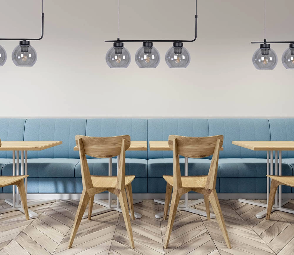 Ta minimalistyczna lampa zachowana w stylu industrialnym to najlepszy wybór do nowoczesnych wnętrz o stylistyce loftowej. Jej niezwykle prosta forma nawiązuje do surowych ascetycznych form. Niczym dzieło sztuki współczesnej, nada przestrzeniom niepowtarzalnego stylu. Lampa posiada dwa punkty mocowania - jeden prowadzący do źródła prądu, a drugi, praktycznie niewidoczny, służy do podtrzymania i zrównoważenia całej konstrukcji. Taka forma struktury sprawia, że wisi ona niezwykle stabilnie i jest całkowicie bezpieczna w użytkowaniu. Oprawa świetlna o takiej budowie jest przede wszystkim przeznaczona do umieszczenia nad stołem w jadalni. W zależności od długości stołu, możesz dobrać u nas odpowiednio pasującą do niego lampę. Oprócz tej, posiadamy w ofercie warianty o większej i mniejszej ilości kloszy, umieszczonych obok siebie w linii poziomej.