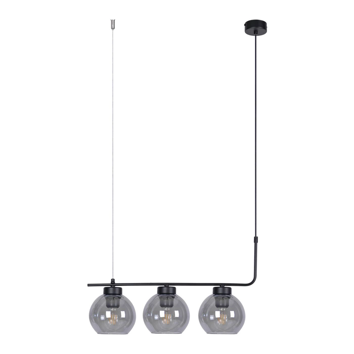 Lampa K-4881 posiada trzy źródła światła wyposażone w uniwersalny gwint E27. Dzięki możliwości wymiany żarówek, każdy może dostosować oświetlenie do własnych preferencji, w zależności od tego, czy woli ciepłe, zimne, bądź neutralne światło. Materiały wykorzystane do budowy lampy to wysokiej jakości metal użyty do czarnej konstrukcji oraz wytrzymałe szkło, zastosowane do budowy kloszy. Szklane kule barwione na delikatny odcień grafitu sprawiają, że światło staje się lekko przytłumione. Dzięki temu tworzą na ścianach ciekawy, tajemniczy klimat, a zarazem są przyjazne dla oka i nie męczą go wieczorową porą. Kolorystyka lampy pozostaje zachowana w klimacie monochrome, dzięki temu staje się ona uniwersalnym dodatkiem do wnętrza. Znajdzie zastosowanie zarówno w kolorowej, zróżnicowanej przestrzeni, jak i surowej, minimalistycznej.