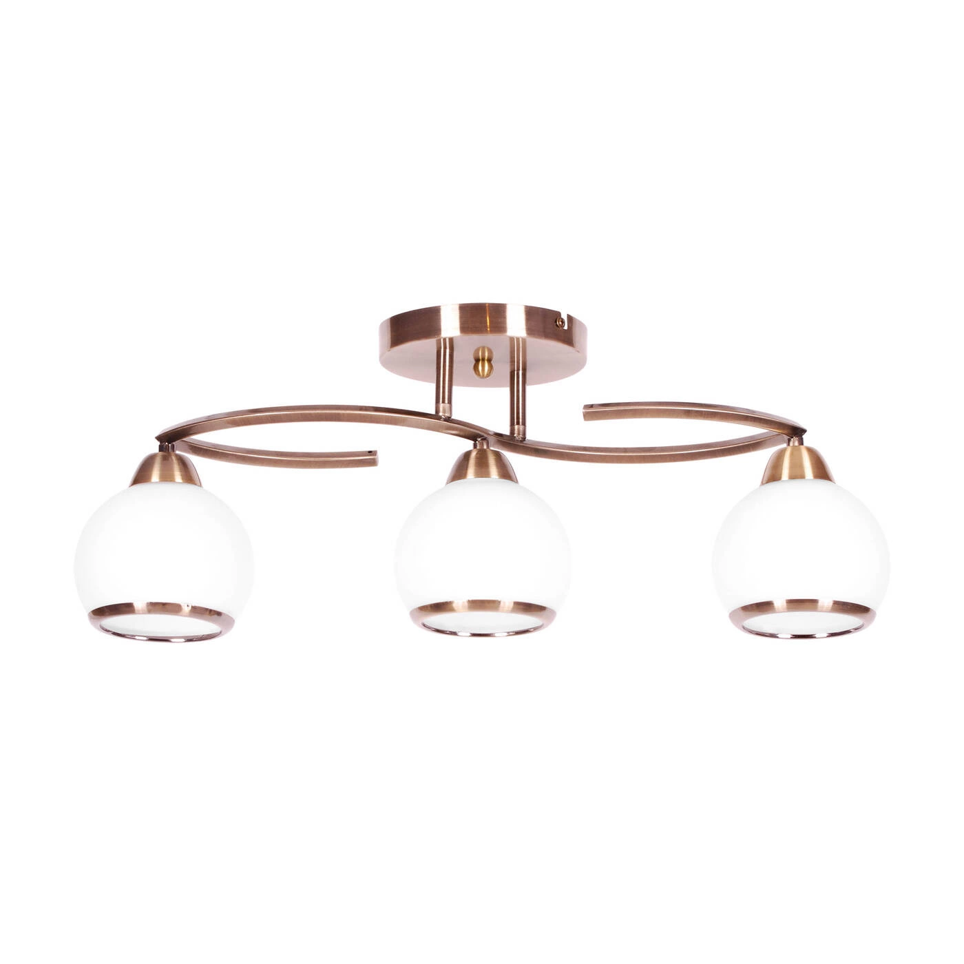 Ponadczasowa lampa sufitowa z okrągłymi, mlecznymi kloszami