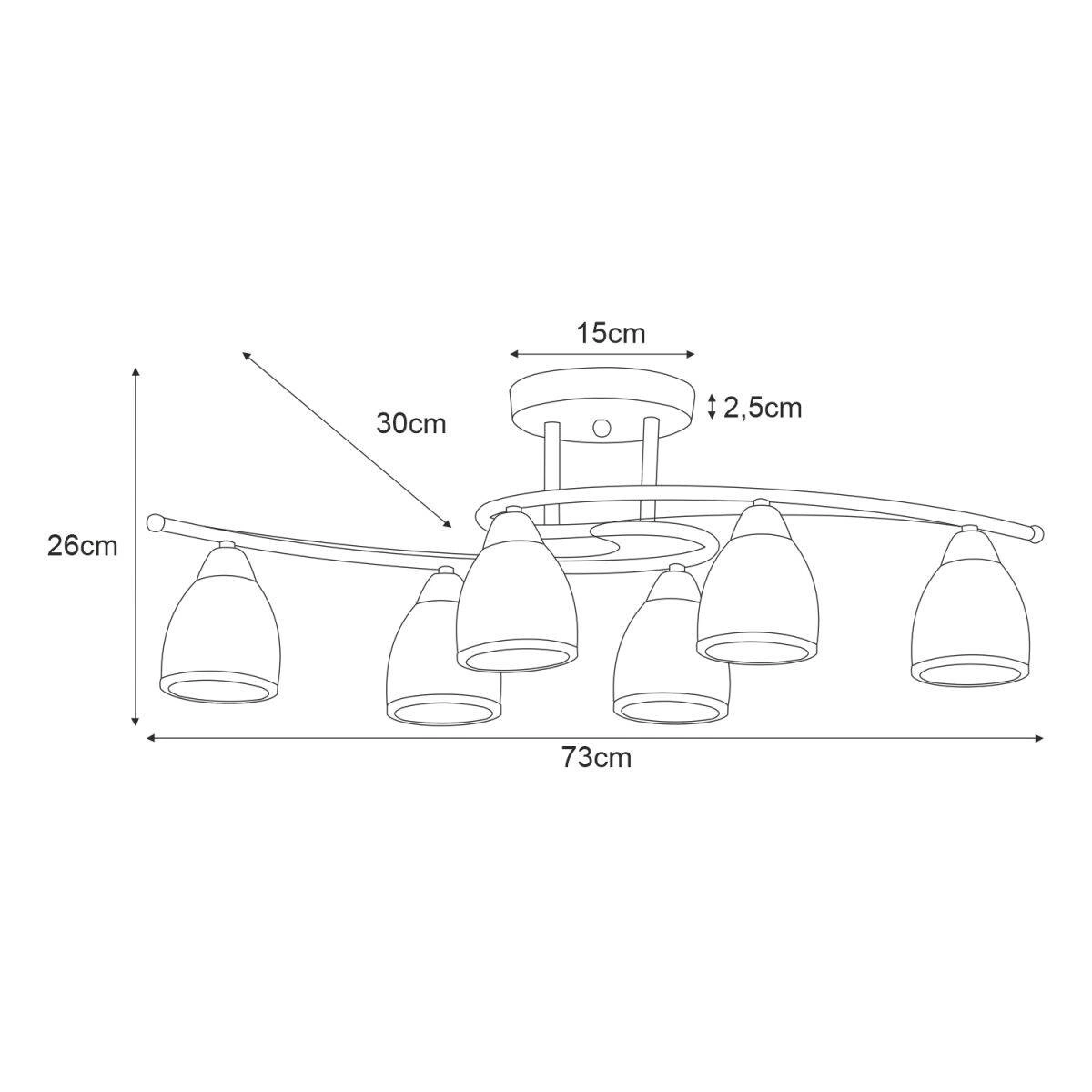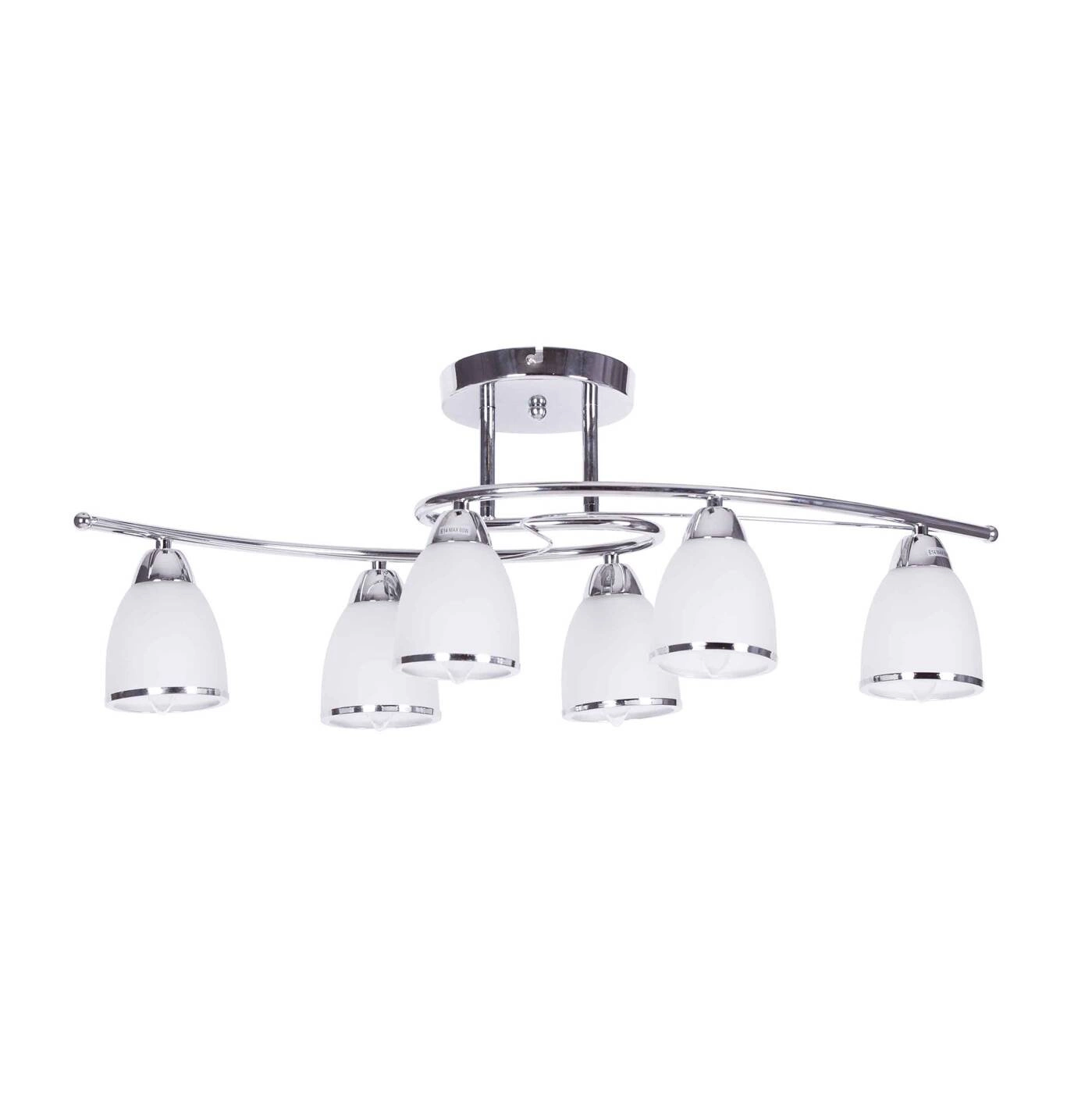 Jak opisać żyrandol K-JSL-8090/6? Konstrukcja lampy w kształcie litery „S”. Sześć źródeł światła umieszczono na oddzielnych ramionach lampy tak, aby każde z nich oświetlało inną część pomieszczenia, w którym zostało zamontowane. Dodatkowo wszystkie punkty świetlne otaczane są  przez szklane klosze, na końcach których widnieją metalowe obwódki. Jest to fenomenalne rozwiązanie estetyczne, które dodaje urozmaicenia samym kloszom. Każdy z nich zachowano w chromie, dzięki temu całość jest spójna.