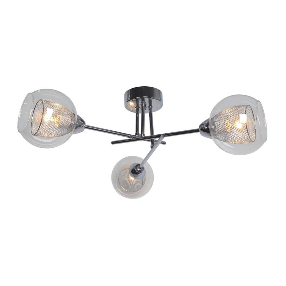 Punkty światła zostały umieszczone na końcach trzech przecinających się ramion. Zakończono je eleganckimi dwuwarstwowymi kloszami: wewnętrzny jest ażurowy i zachowany w kolorze chromu, natomiast zewnętrzny stworzono z przejrzystego szkła. Cała kompozycja została zachowana w chłodnej kolorystyce, co tworzy surowy, ale też niebywale elegancki i dystyngowany klimat.