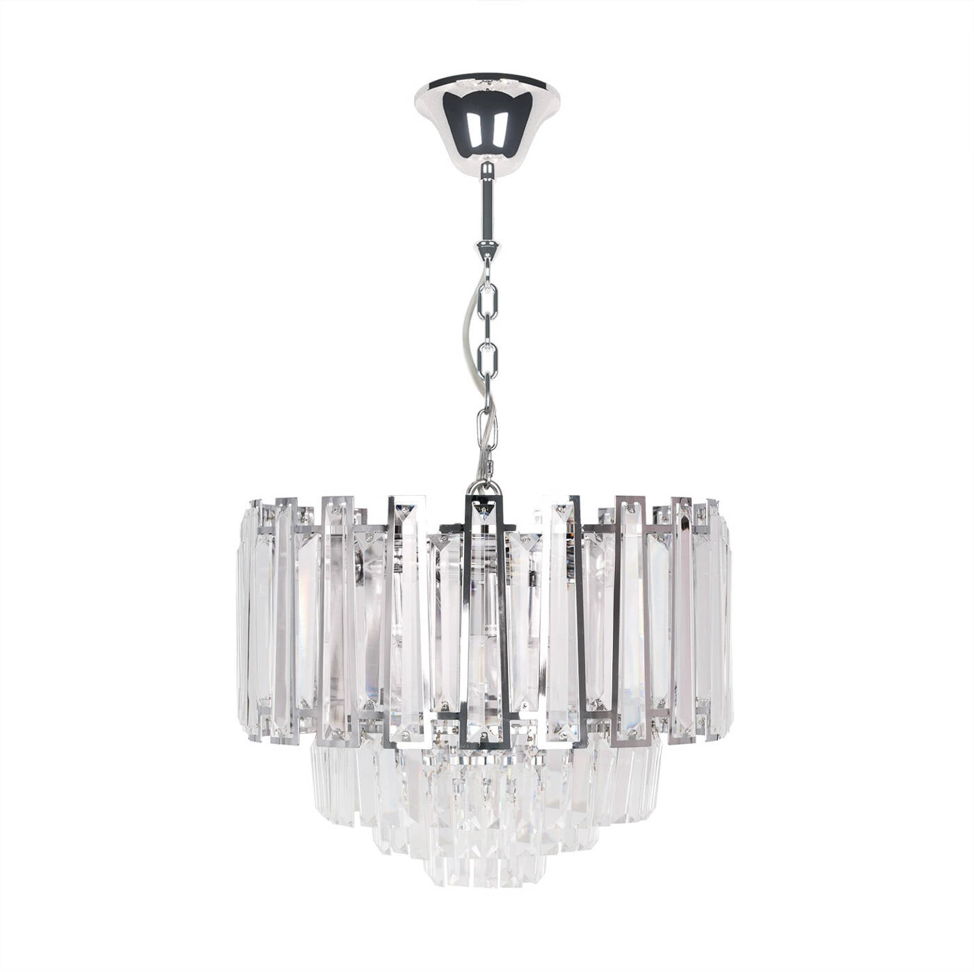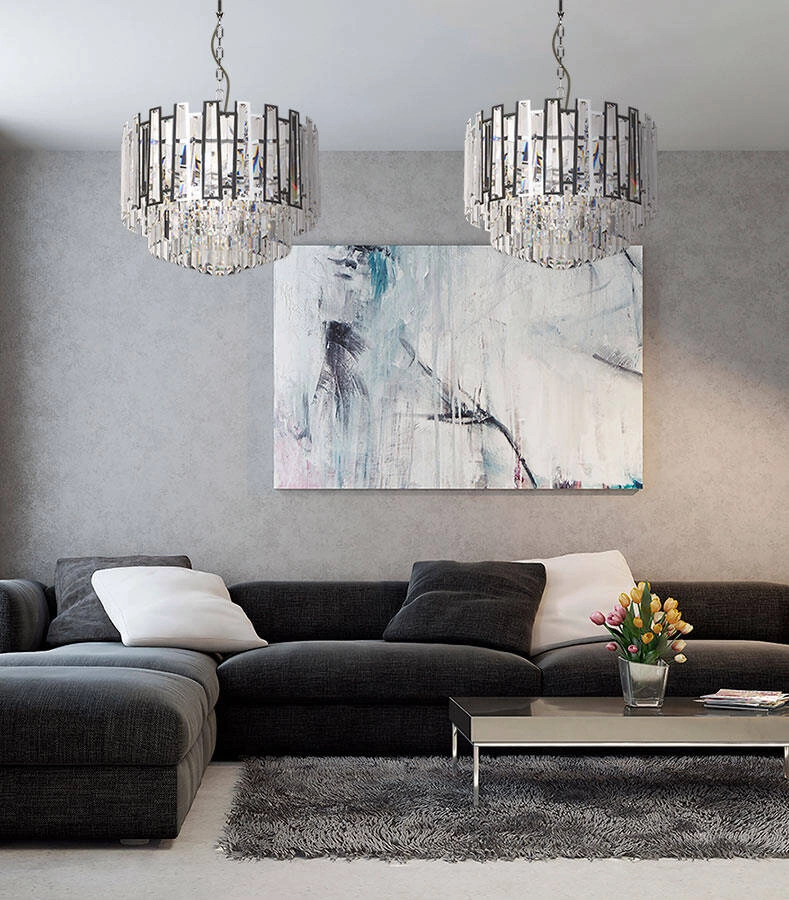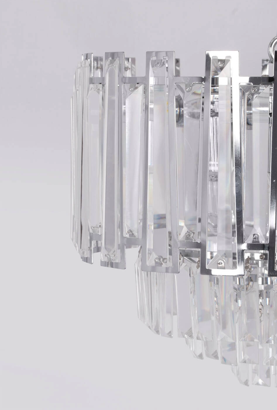 Okazały żyrandol K-8178 to nasza propozycja eleganckiego oświetlenia. Reprezentacyjna lampa wisząca, w stylu glamour, świetnie sprawdzi się we wnętrzach urządzonych w tym nurcie lub typowo klasycznych, gdzie będzie centralnym oświetleniem i znakomitą dekoracją. Wyjątkowy żyrandol, w kolorze srebra, złożony z kryształków ułożonych w kilka okręgów, o różnej średnicy. Całość wisi na łańcuszku, dzięki temu można bez problemu regulować wysokość, do maksymalnej długości 71 cm. Lampa sprawdzi się w eleganckim salonie, jadalni, ale również w salach bankietowych czy weselnych.
