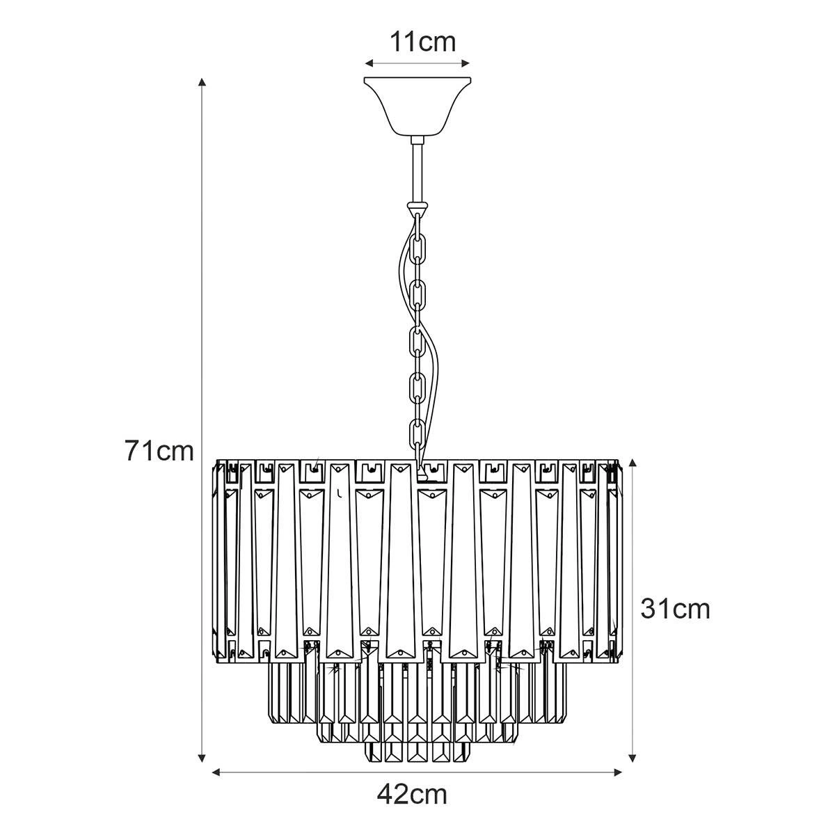 Produkt zawiera sześć oprawek na gwint E14, czyli jeden z najpopularniejszych trzonków na rynku, dzięki czemu wymienisz żarówki, gdy tylko się przepalą. Możesz zdecydować jakie moce będą miały żarówki, do maksymalnej 40W. Wybierz także barwę światła, postaw na ciepłą barwę światła, jeśli chcesz, żeby w pokoju panowała przytulna atmosfera, a pomieszczenie służyło do relaksu. Neutralna barwa światła jest najbardziej uniwersalna i nie przekłamuje kolorów. Barwa zimna jest dobra do pracy, pomaga w koncentracji, nie jest nużąca. Ten model ma średnicę 42 cm, a w rodzinie lamp KATERINA znajdziesz także żyrandol o średnicy 62 cm.