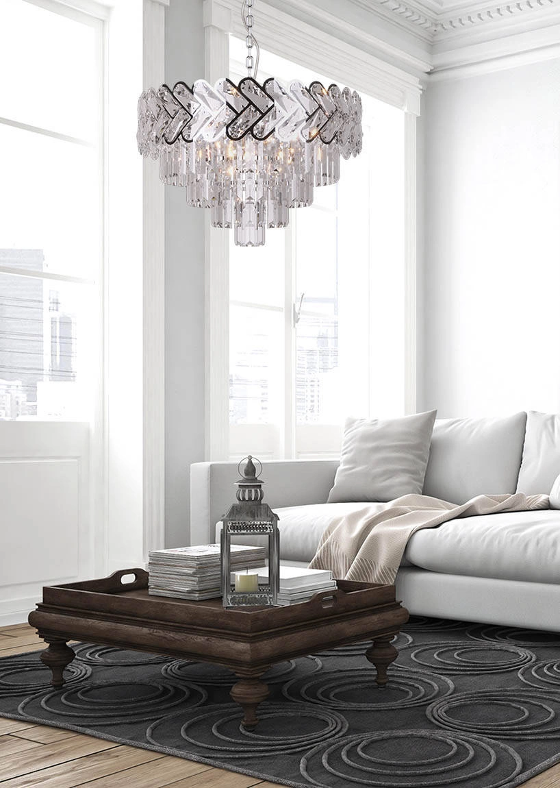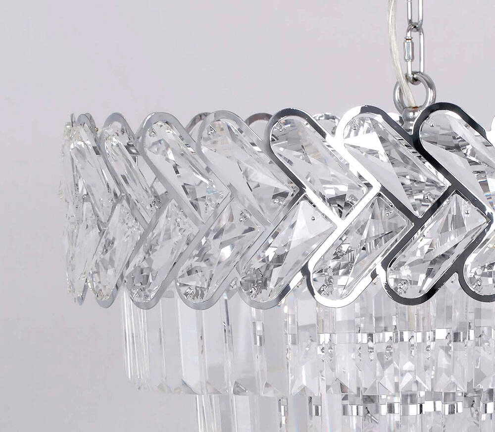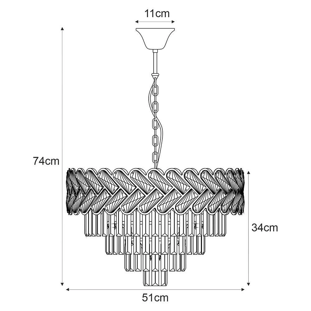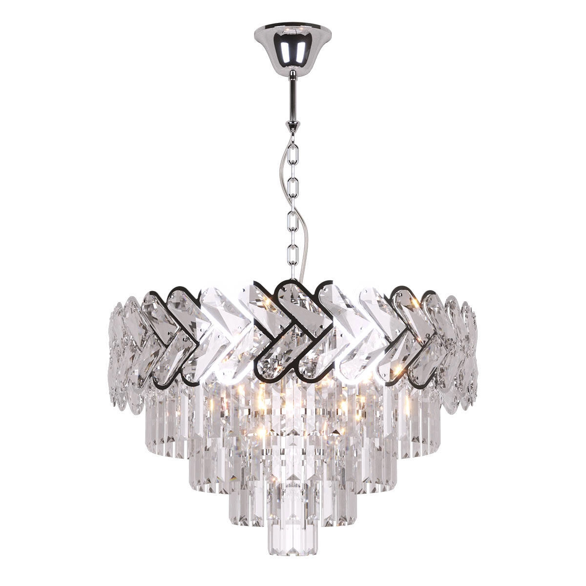 Żyrandol K-8173 to nasza propozycja oświetlenia do luksusowych wnętrz. Okazała lampa wisząca, w kolorze srebra została zawieszona na łańcuszku, co daje możliwość regulacji wysokość i pozwala na dopasowanie jej do swojego wnętrza. Maksymalna wysokość lampy może wynosić 74 cm. Metalowa konstrukcja sprawia, że lampa jest trwała i posłuży Ci na lata. Model został wyposażony w osiem oprawek na gwint E14, bardziej znany jako mały gwint. W lampie zastosowano możliwość podziału na dwa włączniki w systemie 4+4, w związku z tym możesz włączyć tylko cztery albo wszystkie źródła światła. Produkt z naszej oferty ma średnicę 51 cm.