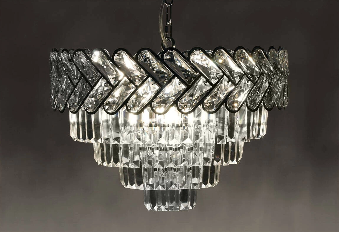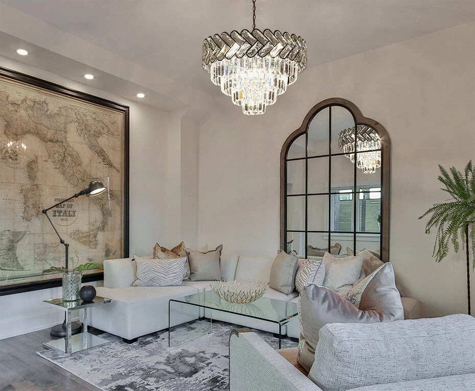 Rodzina lamp TOSCANA to kryształowe żyrandole, zawieszone na regulowanym łańcuszku, z kilkoma rzędami kryształów, w tym z największym ułożonym w ciekawy, przyciągający wzrok, wzór. TOSCANA to lampy w dwóch rozmiarach oraz kolorach. Seria z dopiskiem GOLD w nazwie zawiera lampy w kolorze złotym. Lampy idealnie sprawdzą się w salonie, sypialni, nawet w jadalni oraz oczywiście w salach bankietowych. Żyrandole w stylu glamour, doskonale sprawdzą się we wnętrzach zachowanych w tym nurcie.