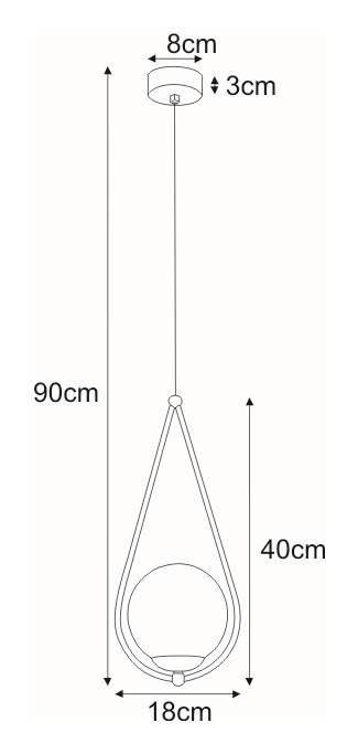 Jedna pętla wykonana z metalu mieści w swoim środku szklaną kulę pełniącą funkcję klosza. Dzięki temu emitowany blask światła jest przyjemnie stłumiony i zapewnia ciekawe efekty wizualne nie będąc jednocześnie ściemnionym na tyle mocno aby nie móc spełniać swojej oświetleniowej roli. Jako, że jest to zaledwie jedno źródło światła, lampa może być wykorzystana w celu uzupełnienia już emitowanego blasku, bądź jako samodzielny zwis w małych pomieszczeniach. Linka mierząca wyjściowo 43 cm zostawia możliwość regulacji, co sprawia, że lampa jest po prostu praktyczna. Każdy ma możliwość nadania jej wyjątkowego i niepowtarzalnego charakteru montując ją na samodzielnie wybranej wysokości.