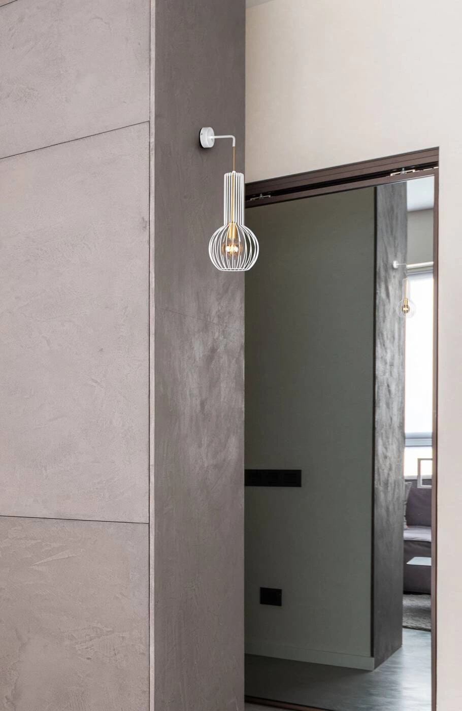 Seria lamp ARVI WHITE została zaprojektowana w stylu loftowym, o czym świadczą surowe formy kloszy oraz miejsca na żarówkę, które pozostają niczym nieosłonięte. Takie oświetlenie stanowi idealną alternatywę dla typowych lamp wiszących jakie możemy spotkać w większości domów. Biała stylistyka podsufitki oraz prętów sprawia, że kompozycja jest przejrzysta i nie będzie przytłaczać wnętrza. Ważnym elementem dekoracyjnym serii są przewody oraz osłonki na żarówki w kolorze złotym. Z bielą tworzą ciekawą, elegancką kompozycję.