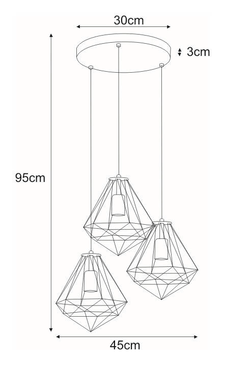 Klosze lampy zespawano ze sobą z najwyższą dokładnością z wysokiej jakości metalowych prętów. Stworzono je na wzór oszlifowanych diamentów, gdzie każdy pręt to krawędź przestrzennej bryły. Abażury są ażurowe, nie posiadają wypełnienia i nie osłaniają punktów światła, dzięki czemu będzie ono padać nietłumione na pomieszczenie i dobrze doświetli każdy kąt.