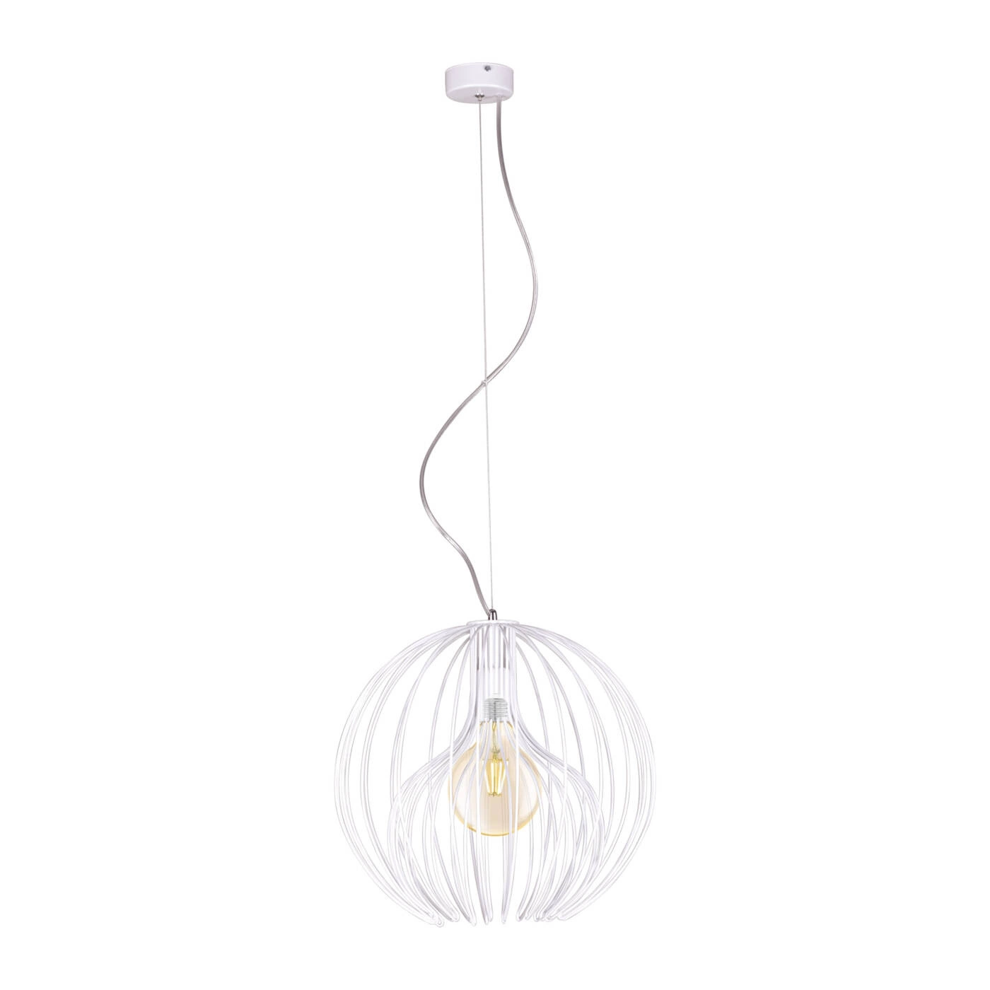 K-3405 BIAŁA to mniejsza propozycja klosza. Posiada 40 cm szerokości i 40 cm wysokości. Takimi kształtami idealnie wpasuje się w każdego typu pomieszczenie. Można zastosować go solo bądź stworzyć ciekawą kompozycję z kilku takich elementów. Lampę umieszczono na regulowanej żyłce, której maksymalny zwis to 105 cm.