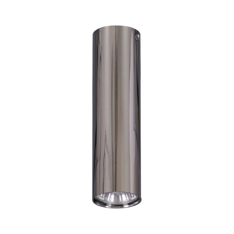 Produkt K-4822 to pojedynczy spot w kształcie tuby, w srebrnym kolorze o połyskującej powierzchni. W jego dolnej części umieszczono jedno źródło światła wyposażone w gwint GU10. Lampka posiada wymiary 5,5 x 20 cm. Stworzona z najlepszej jakości metalu, posłuży na długie lata użytkowania. Oświetlenie w formie spotów to naprawdę uniwersalne rozwiązanie. Jest dobrym wyborem dla miłośników nowoczesnego wystroju wnętrz, którym już dawno znudziły się klasycznej budowy żyrandole czy lampy wiszące. Wystające bezpośrednio z sufitu pojedyncze punkty światła stworzą surową stylistykę we wnętrzu, wyglądając jak nieduże dzieła sztuki współczesnej.