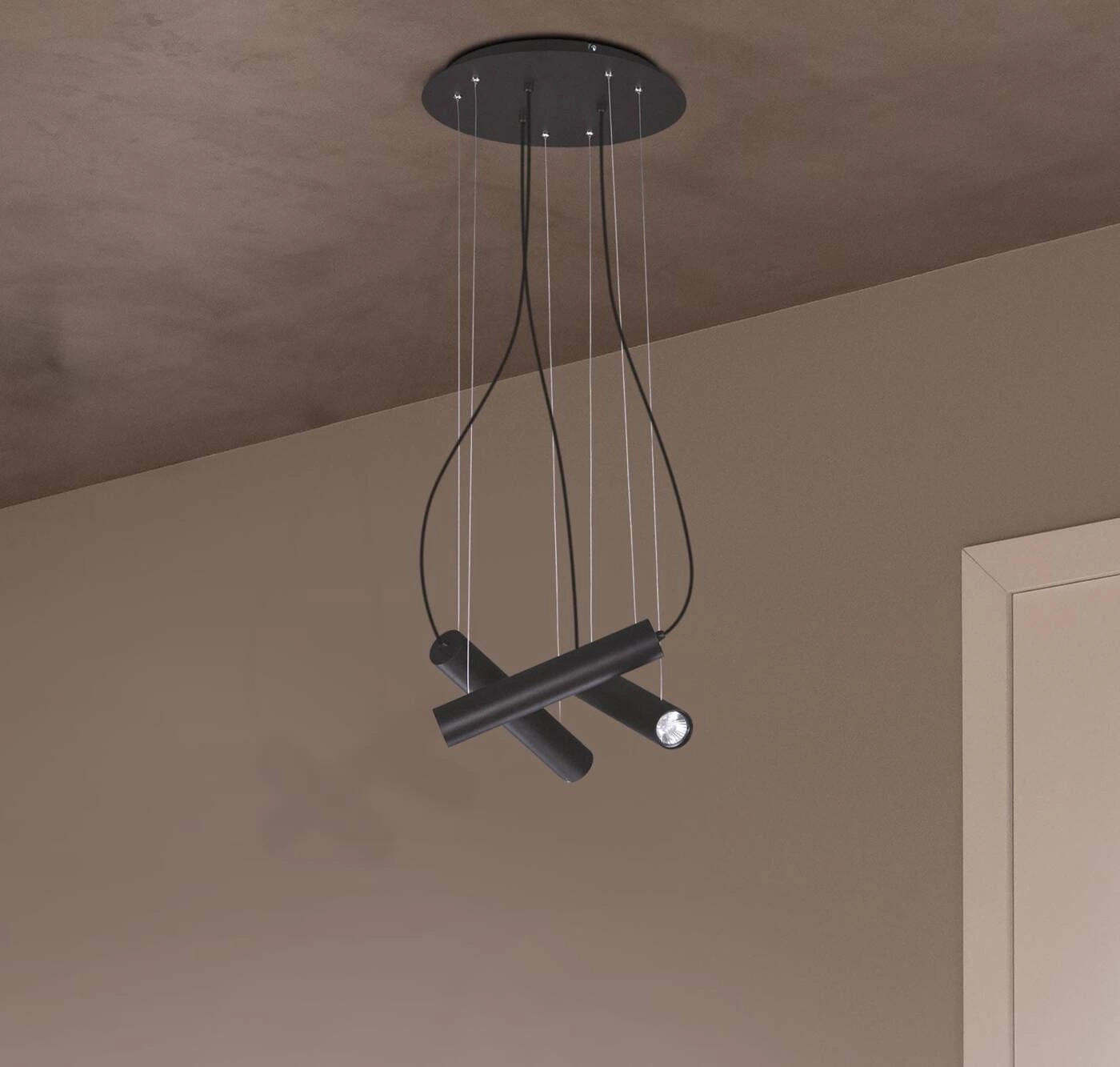 Trzy podłużne tuby zostały umieszczone swobodnie na regulowanych przewodach. Każda posiada dwa punkty mocowania, dzięki czemu możemy dopasować sobie nie tylko długość ich zwisu, ale też kąt nachylenia. Produkt został stworzony z najlepszej jakości metalu, dzięki czemu posłuży nam na długie lata użytkowania. Uniwersalne wzornictwo i czysta forma sprawia natomiast, że lampa nigdy nie wyjdzie z mody.