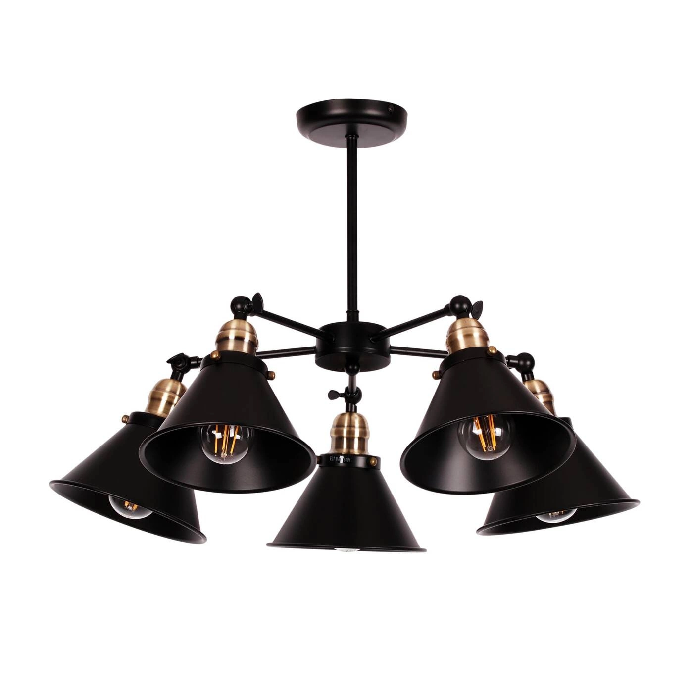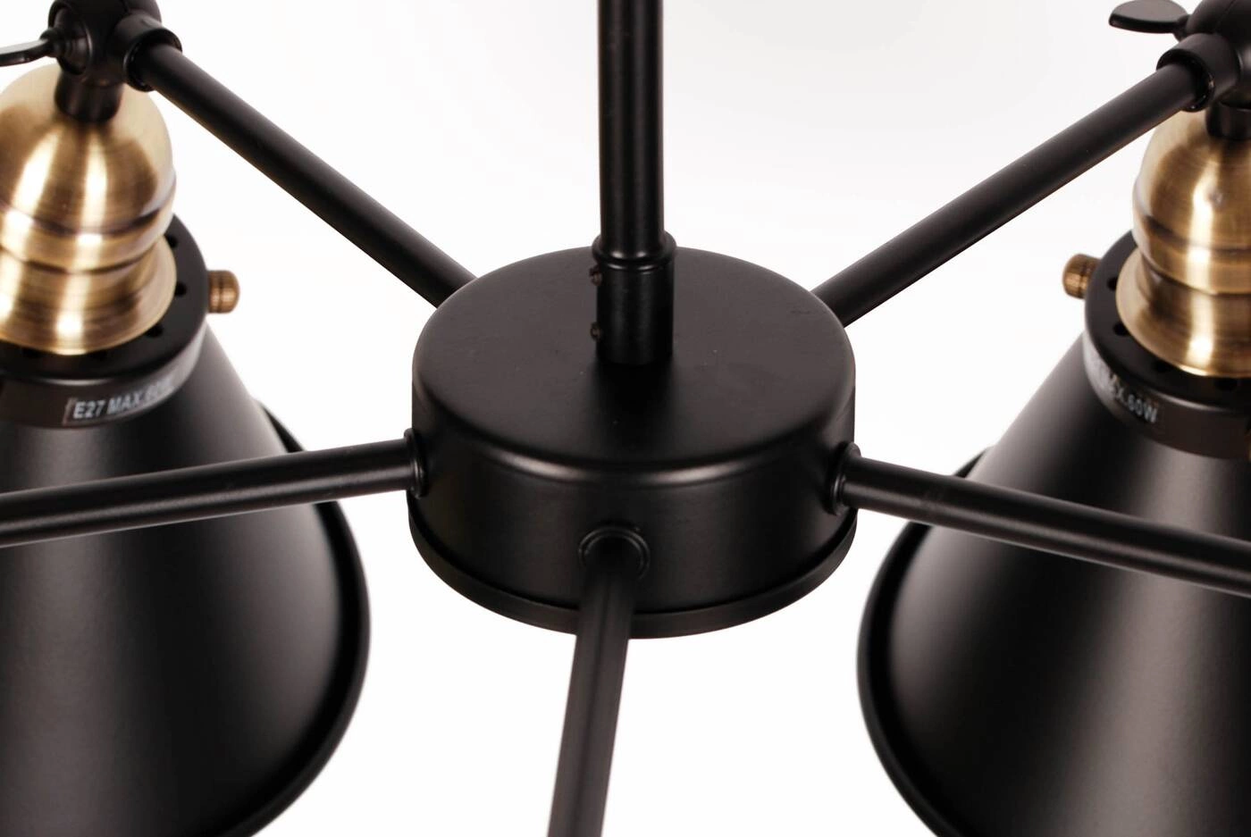 Lampa sufitowa K-8038B-5 to propozycja z największą ilością kloszy - ma ich aż pięć! Każdy z punktów światła spoczywa na trzonie, wychodzącym z okrągłego krążka umieszczonego w dolnej części konstrukcji. Zostały one umieszczone w regularnych odstępach od siebie, tworząc ciekawą kompozycję nad naszymi głowami. Ten industrialny żyrandol będzie najlepszym rozwiązaniem jako główne oświetlenie w pomieszczeniu. Każdy z punktów światła został wyposażony w uniwersalny gwint E27, dzięki czemu bez problemu dopasujesz żarówki o zadowalającej Cię mocy i barwie. Przy nieprzejrzystych, ciemnych kloszach, efektownym rozwiązaniem będą te ozdobne [sprawdź naszą ofertę].
