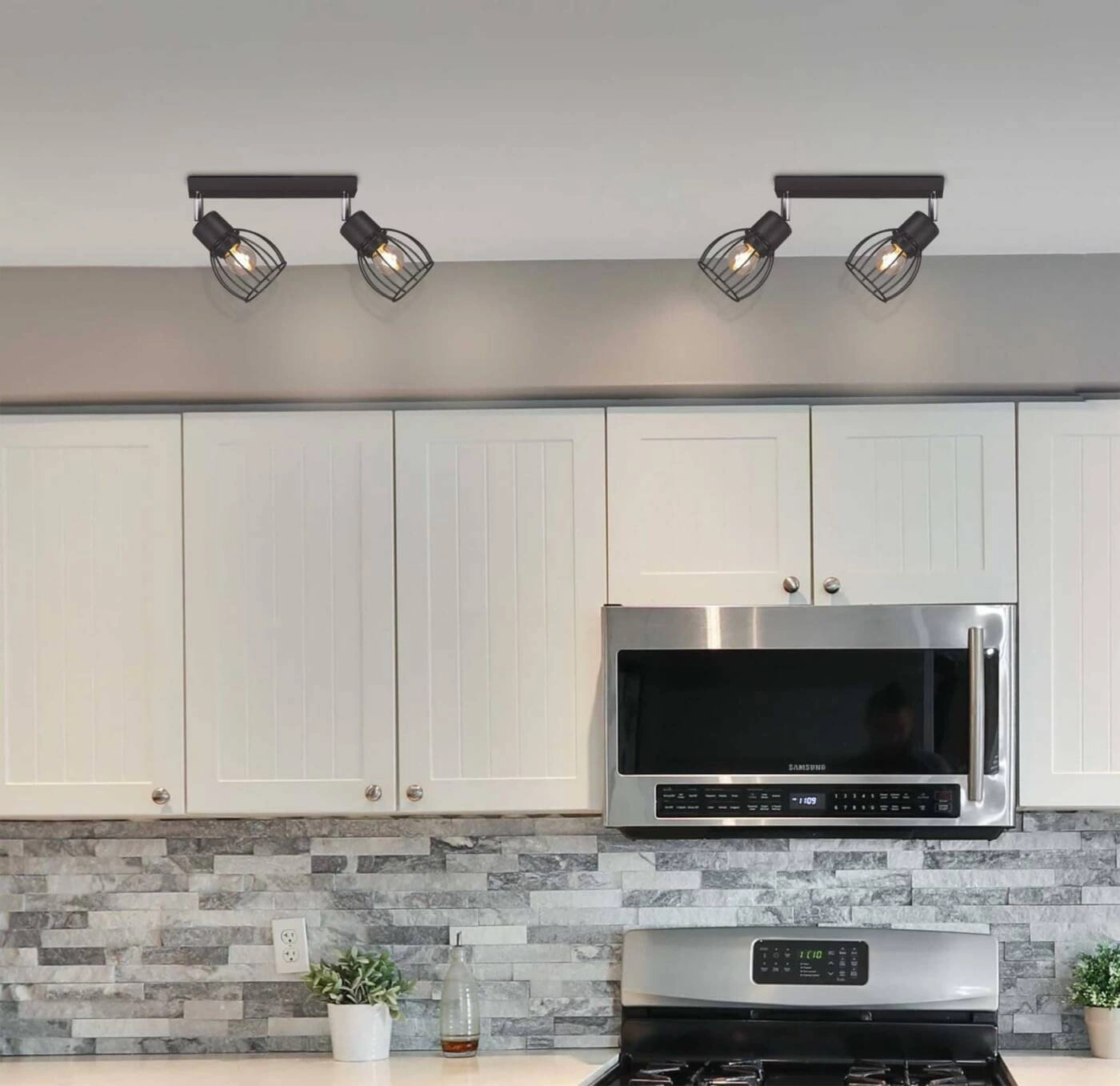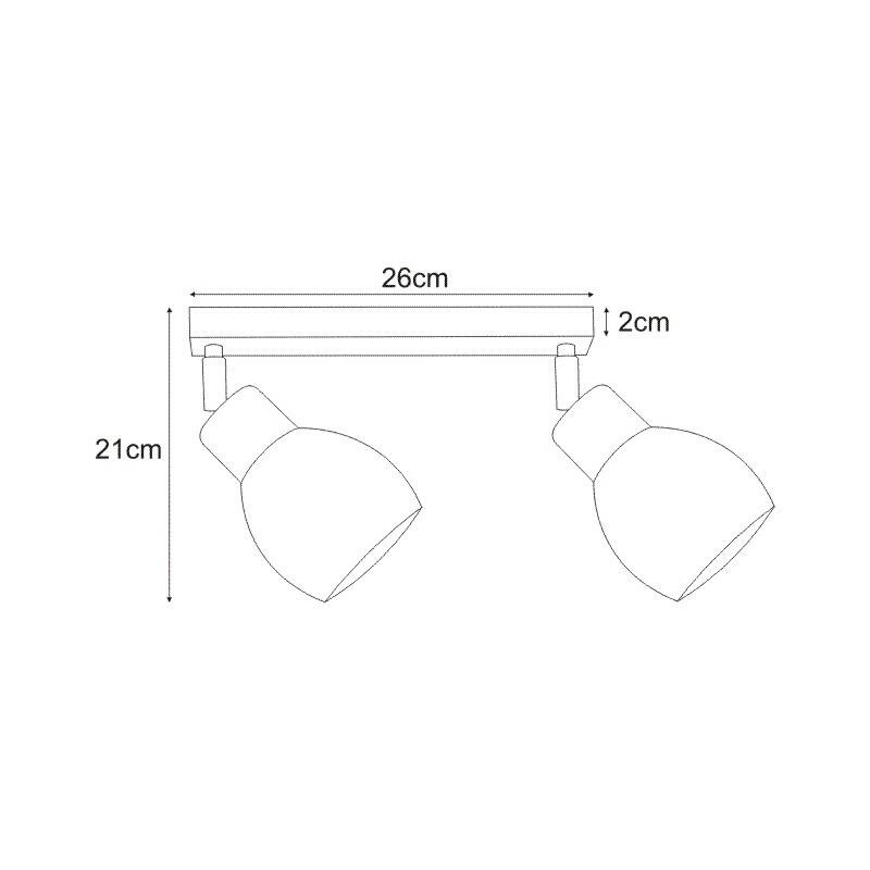 Dwa źródła światła zostały osadzone na mierzącej 26 cm listwie w kształcie prostopadłościanu o wysokości równej 2 cm. Umieszczono je w równych od siebie odstępach tak, aby można było nimi dowolnie manewrować, dzięki możliwości regulacji kąta padania światła. Zastosowanie uniwersalnych trzonków E27 sprawia, że nie będziesz miał żadnego problemu z dopasowaniem żarówek o zadowalającej Cię barwie oraz mocy (max. 60W).