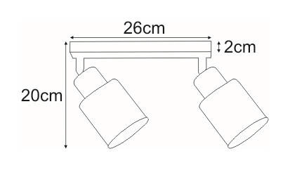 Dwa punkty światła umieszczono na 45 cm listwie mocowanej stycznie do sufitu. Wysokość lampy to jedynie 20 cm, dzięki czemu sprawdzi się świetnie także w tych pomieszczeniach z niżej zawieszonym sufitem. Każde ze źródeł światła posiada możliwość regulacji kąta nachylenia. Dzięki takiemu rozwiązaniu dopasujesz ich ustawienie według własnych potrzeb.