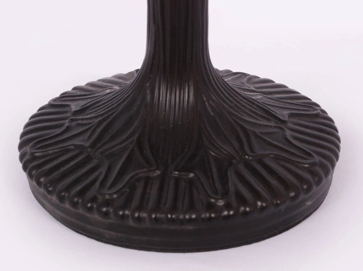 Lampka stołowa z serii WITRAŻ to przede wszystkim klosz o średnicy 30cm, którego większość wypełniają perłowe kafelki. Całość osadzona jest na stylowej nodze z postarzanego metalu z licznymi żłobieniami zwieńczonej gniazdem na żarówkę E27. Zastosowanie wymiennego źródła światła zwiększa funkcjonalność lampy i pozwala na dostosowanie barwy i jasności światła do indywidualnych preferencji użytkownika.