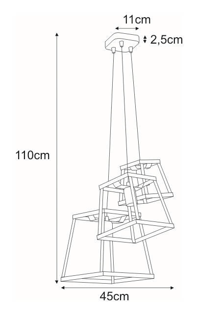 Każda z trzech opraw wiszących posiada możliwość niezależnego regulowania wysokości. Dzięki temu ostateczny wygląd lampy zależy tylko od Ciebie. Dodatkowym atutem tego żyrandola jest fakt, że posiada on możliwość podziału na dwa włączniki w systemie 2+1. Dzięki temu ta lampa może służyć jako główne źródło światła, kiedy włączymy wszystkie żarówki lub włączając tylko jedną - jako delikatne światło podczas zasypiania.