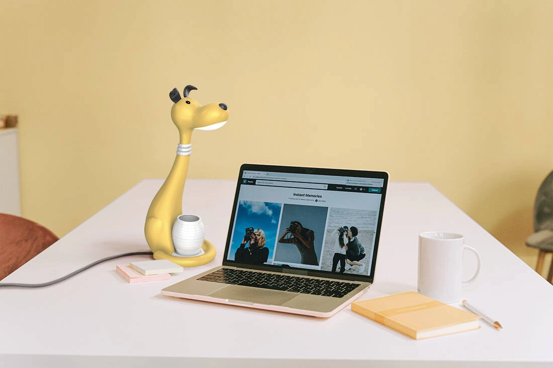 Kolejnym z superlatywów jest elastyczne ramię, które wizualnie oczywiście także nie odbiega od wyglądu samej lampki- przecież każdy piesek ma swoją obrożę na szyi! Sama lampka jest dostępna aż w trzech kolorach: chłopięcym niebieskim, dziewczęcym różu oraz uniwersalnym żółtym.