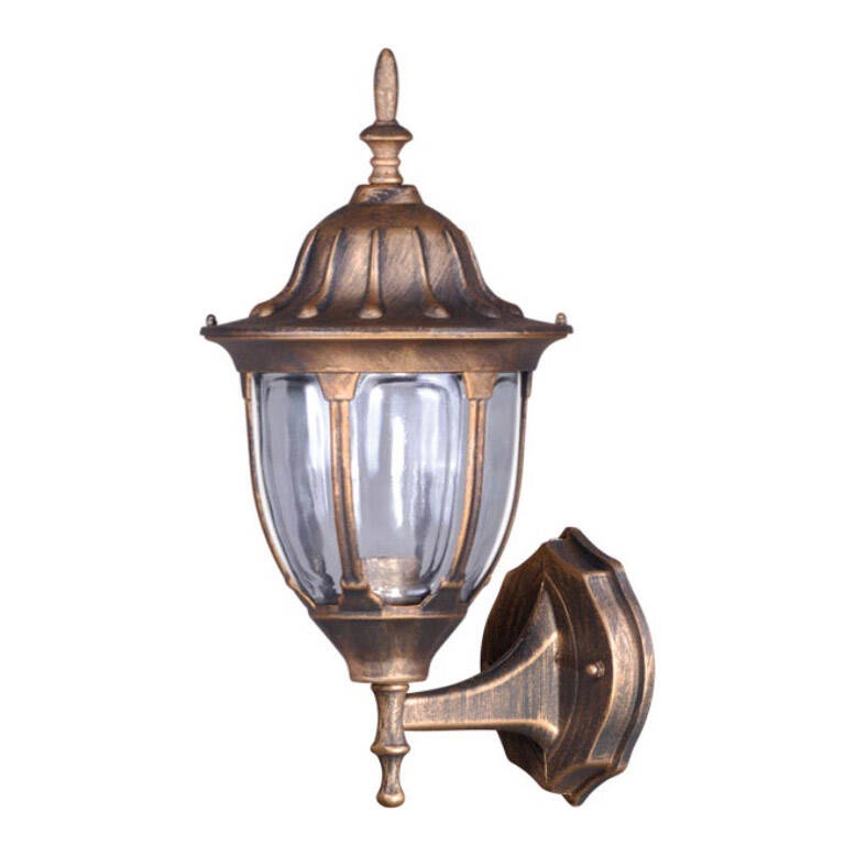 Kinkiet zewnętrzny z serii VASCO to przykład tradycyjnego oświetlenia ogrodowego, które cieszy się niezwykłą popularnością od wielu lat. Wiele modeli tego typu ma charakter retro, na co składa się zarówno charakterystyczna forma jak i kolorystyka. Szczególnie popularne jest połączenie czerni i złota, które nie tylko efektownie postarza oprawę, ale także nadaje jej eleganckiego wydźwięku. W przypadku K-5007A/N, świetnie łączy się też z designem kinkietu, który nawiązuje do projektów klasycznych latarni. Na wspomniany efekt składa się stylowa osłona mocowania, zwężane ramie oraz klosz z wypukłego szła ozdobiony charakterystycznym daszkiem. Cała konstrukcja jest spójna stylistycznie a poszczególne elementy doskonale ze sobą współgrają.