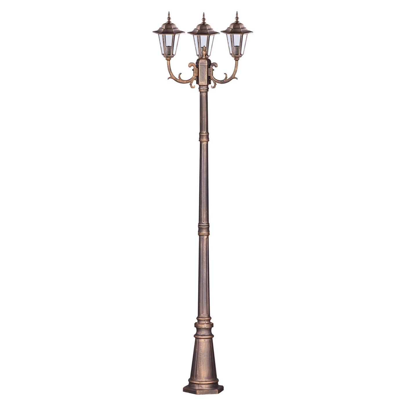 Wysoka, zdobiona latarnia ogrodowa z trzema ramionami