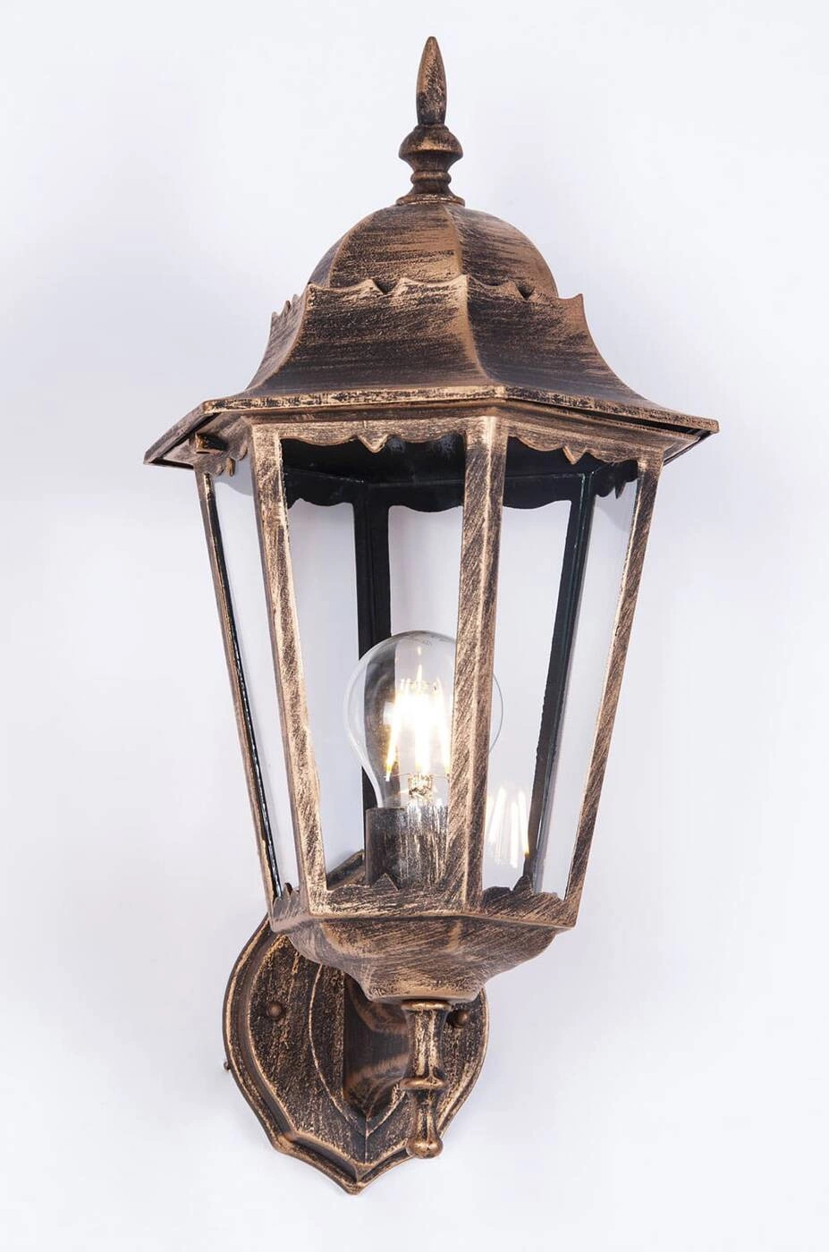 Za sprawą przezroczystego szkła, użytego w kloszu, żarówka jest dobrze wyeksponowana, można się więc pokusić o wybór designerskiego modelu, który bez problemu znajdziemy z uwagi na zastosowany gwint E27. Co więcej, poza walorami wizualnymi, dzięki takiemu rozwiązaniu, więcej światła przedostaje się przez klosz. Można mieć więc pewność że zarówno elewacja jak i wszystko w około, będzie dobrze oświetlone.