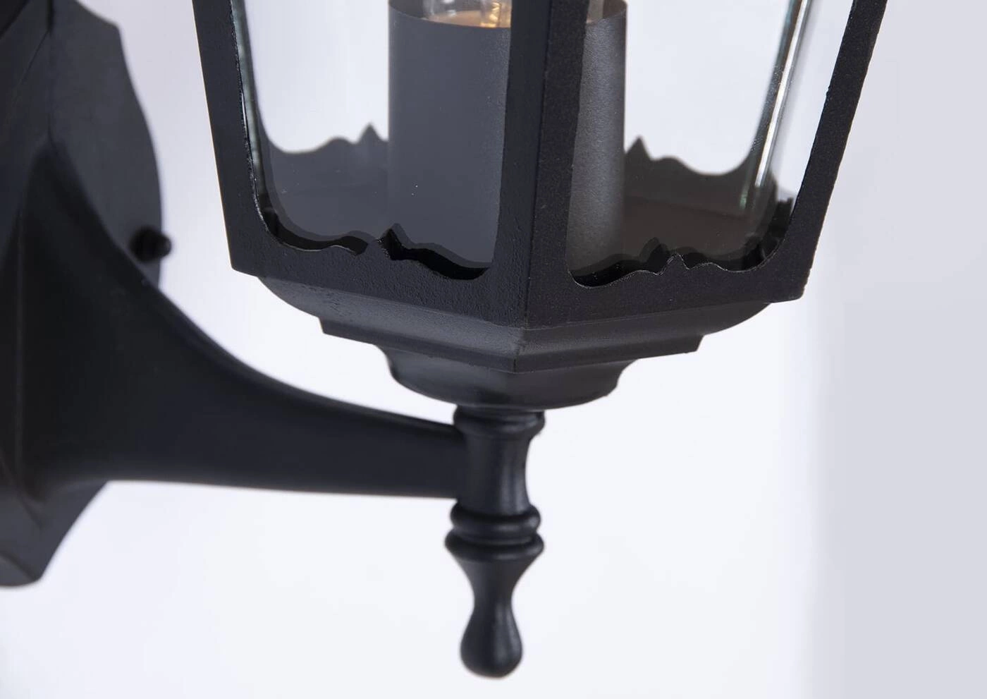 Produkt wykonany z materiałów najwyższej jakości, czyli metalu i szklanych, przezroczystych szybek z pewnością posłuży na lata. Lampa charakteryzuje się klasą szczelności IP44, czyli jest odporna na szkodliwe działanie warunków atmosferycznych, nie straszny jej deszcz, ani śnieg. Wymiary kinkietu to: wysokość 44 cm, szerokość 22 cm, a głębokość to 13 cm.