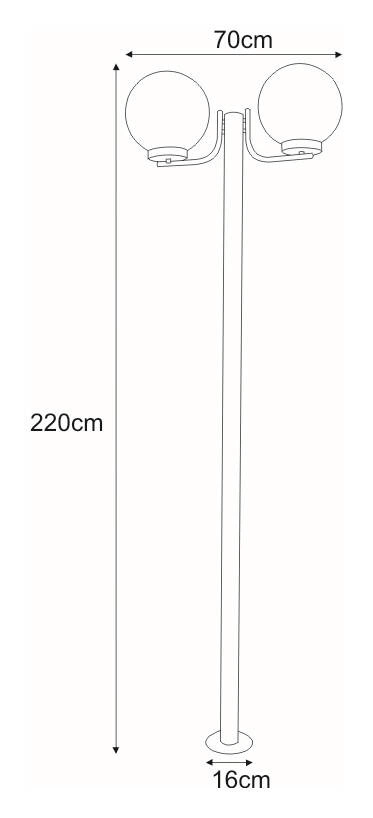 Entuzjaści właśnie takich aranżacji z pewnością docenią lampę stojącą z serii ANA. Jej konstrukcja składa się z metalowej rury pełniącej funkcję nogi, dwóch ramion oraz szklanych okrągłych kloszy. Lampa jest w całości w kolorze szczotkowanej stali, co dodaje jej surowego charakteru. Z uwagi na nietuzinkowy design i minimalistyczne wzornictwo, K-LP270 -2200 najlepiej sprawdzi się w nowoczesnych ogrodach, w których dominuje prostota i symetria. Znaczne gabaryty sprawią, że omawiany model może z powodzeniem rozświetlić spory teren wokół siebie, a co za tym idzie, nie ma konieczności stosowania dużej ilości mniejszych lamp. Dodatkowy efekt zapewniają kuliste klosze, które rozprowadzają światło w promieniu 360 stopni, podczas gdy mleczne, matowe szkło doskonale je rozprasza. Ogród jest zatem skąpany w miękkim i przyjemnym dla oka świetle, niezależnie od temperatury barwowej zastosowanych żarówek. Te, z uwagi na popularny gwint E27, bez problemu dobierzemy pod kątem własnych preferencji.