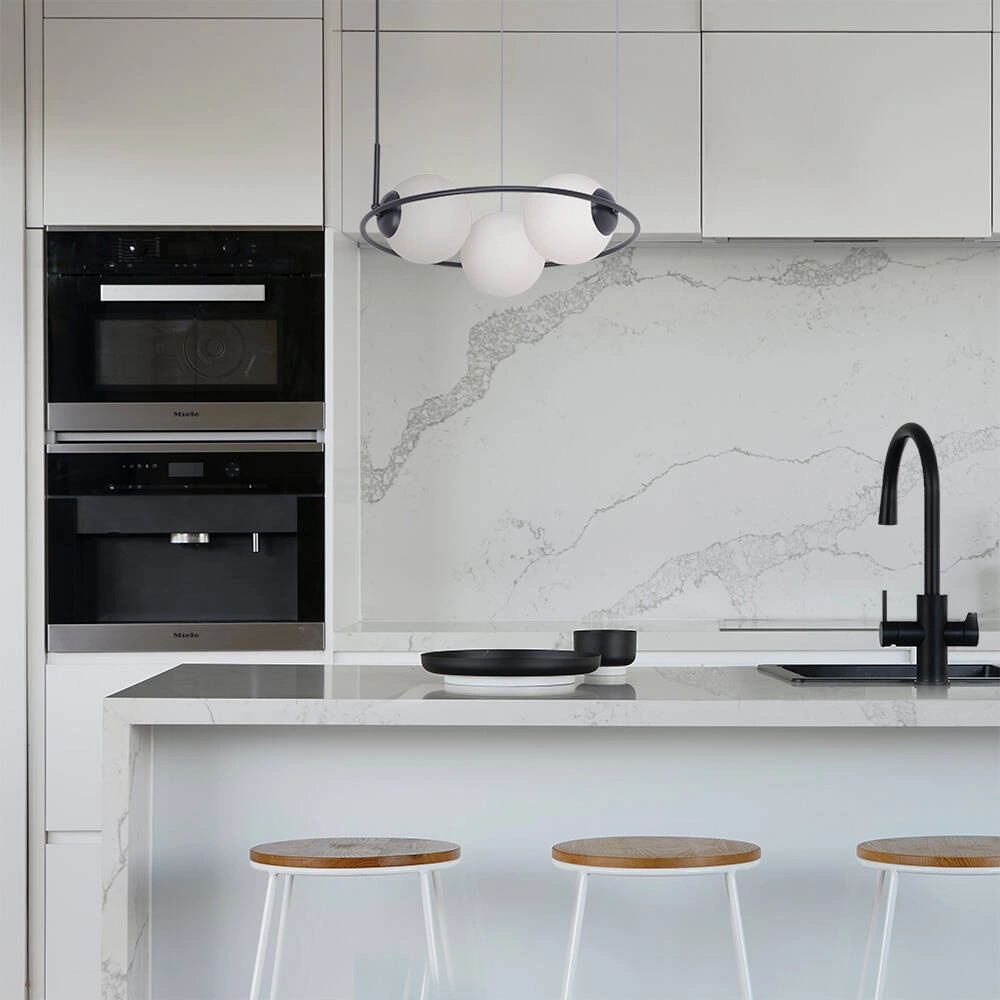 Geometryczne kształty, minimalistyczne formy w ostatnich latach cieszą się ogromną popularnością. Elipsy, okręgi oraz kule to elementy, których klienci szukają w oświetleniu coraz częściej.  Lampa idealnie sprawdzi się do kuchni nad wyspę kuchenną oraz jako lampa nad stół w jadalni czy salonie.