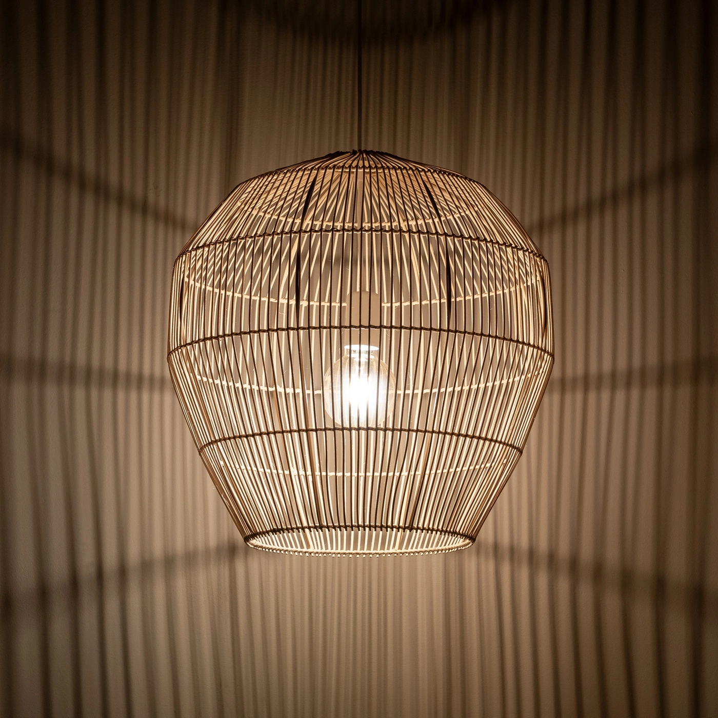Lampa wisząca HAITI M łączy kolor naturalnego drewna z bielą. Swoim ciekawym wyglądem wpisze się w przestrzeń boho, skandynawską czy japandi. Doświetli Twoje wnętrze, jednocześnie stając się jego elementem dekoracyjnym. Odmień swoją przestrzeń zgodnie z zasadą „mniej znaczy więcej”!