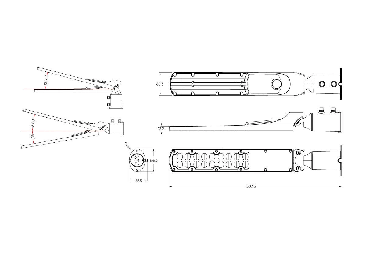Dzięki opcji montażu na słupie, wysięgniku lub bezpośrednio na ścianie, oprawa zapewnia elastyczność i łatwość instalacji. Co więcej, daje możliwość uchylenia oprawy o +/- 15 stopni lub montaż pod kątem 90 stopni, co pozwalana na idealne dopasowania oświetlenia do konkretnych potrzeb.