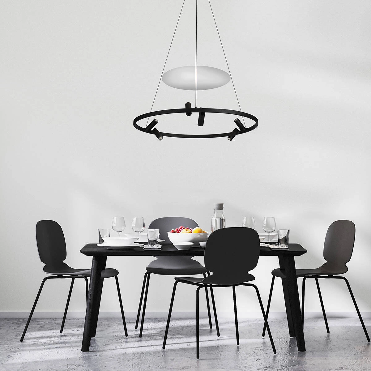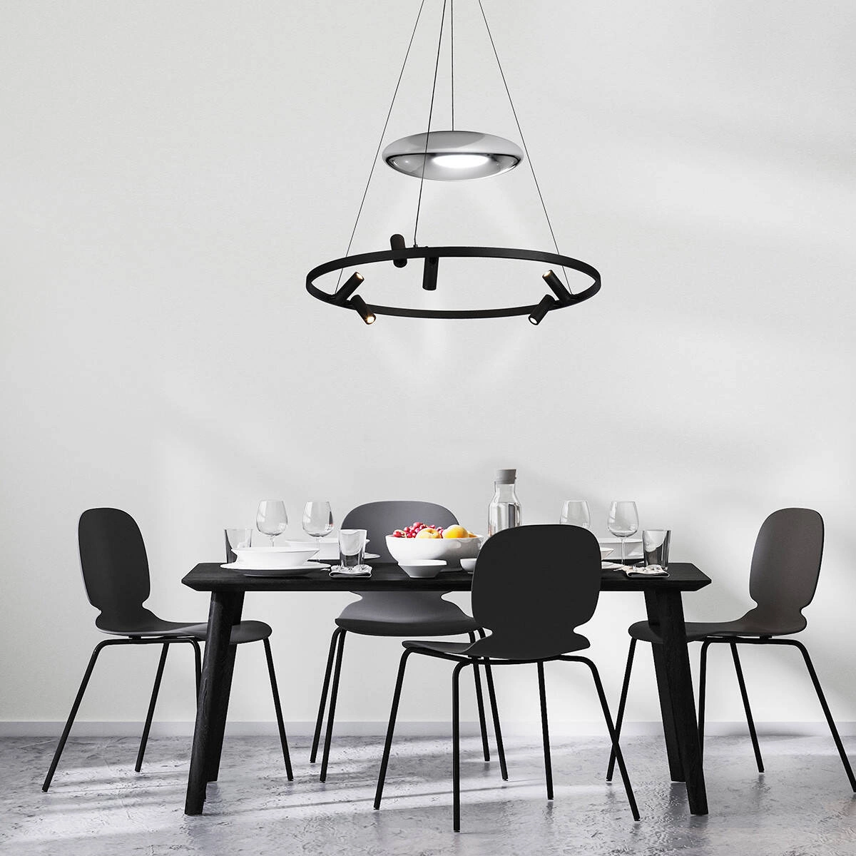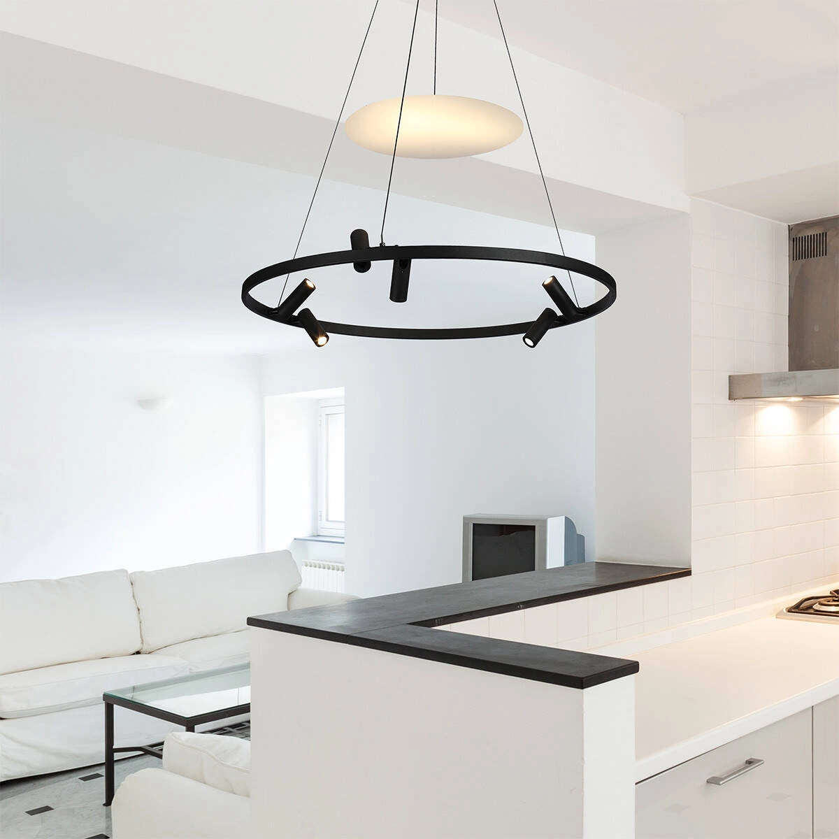 Lampa wisząca Almeria wyróżnia się nietypową budową, która przyciąga uwagę swoim unikalnym stylem. Została wykonana z solidnej obręczy z metalu, na której umieszczone są reflektorki z wbudowanym światłem LED o neutralnej barwie 4000K. Powyżej obręczy umieszczony jest talerz wykonany z metalu w białym kolorze. Jego głównym zadaniem jest efektywne odbijanie i rozpraszanie światła, co pozwala na równomierne i delikatne oświetlenie emitowane przez lampę. Dzięki takiemu innowacyjnemu rozwiązaniu, światło wytwarzane przez lampę Almeria jest idealnie rozproszone, co stwarza przyjemną atmosferę w pomieszczeniu. Jej spore rozmiary czynią ją doskonałym wyborem do salonu, jadalni czy sypialni, dodając wnętrzu wyjątkowego charakteru i stylu.