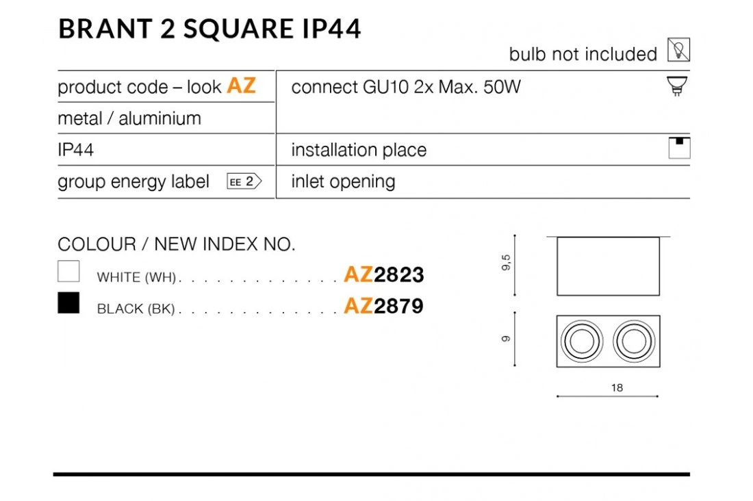 Azzardo BRANT 2 SQUARE IP44 BLACK 2879