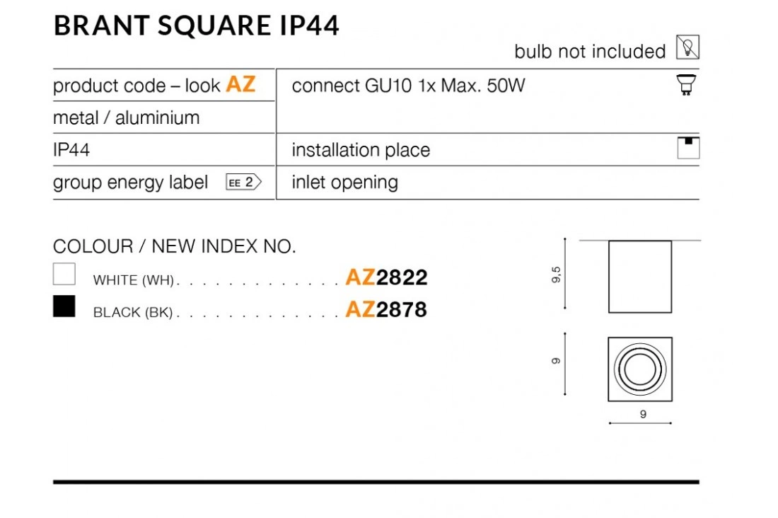 Azzardo BRANT SQUARE IP44 BLACK 2878