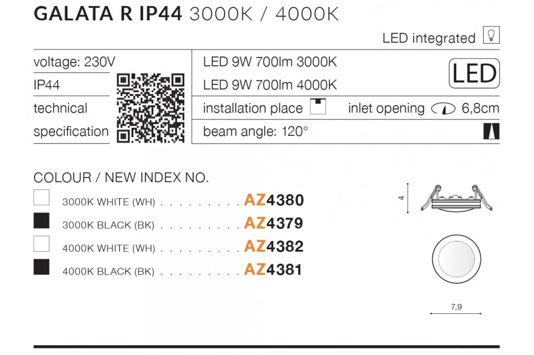 Azzardo GALATA R 3000K BK 4379