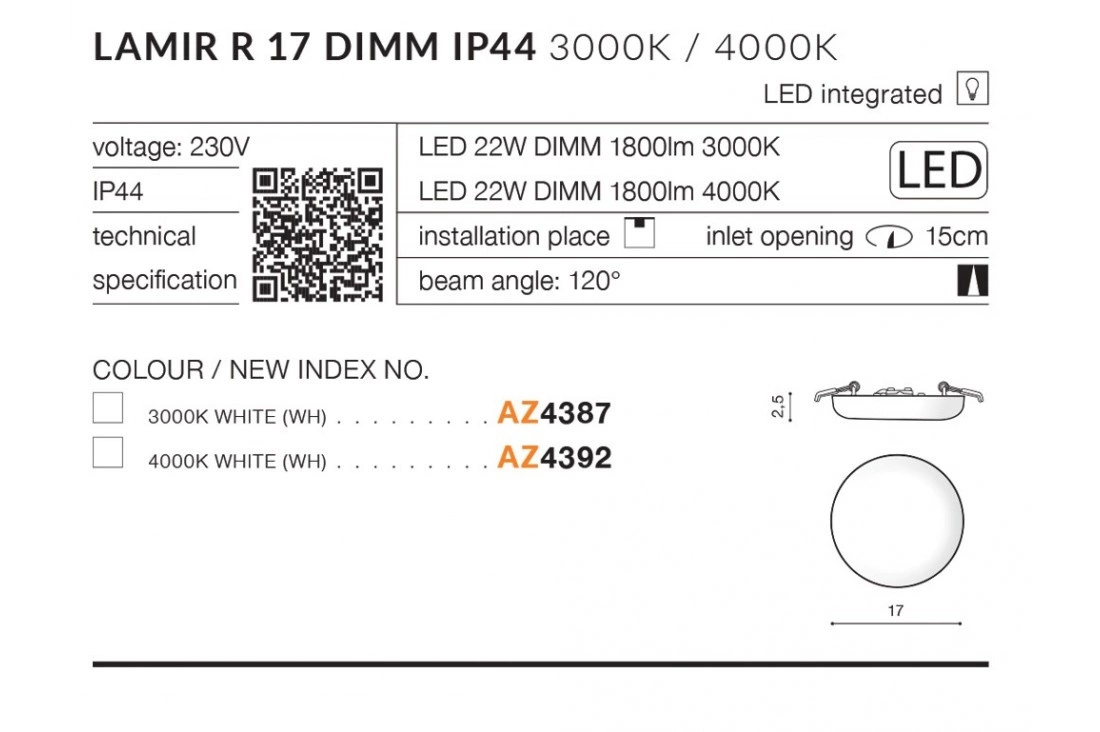 Azzardo LAMIR R 17 3000K DIMM 4387