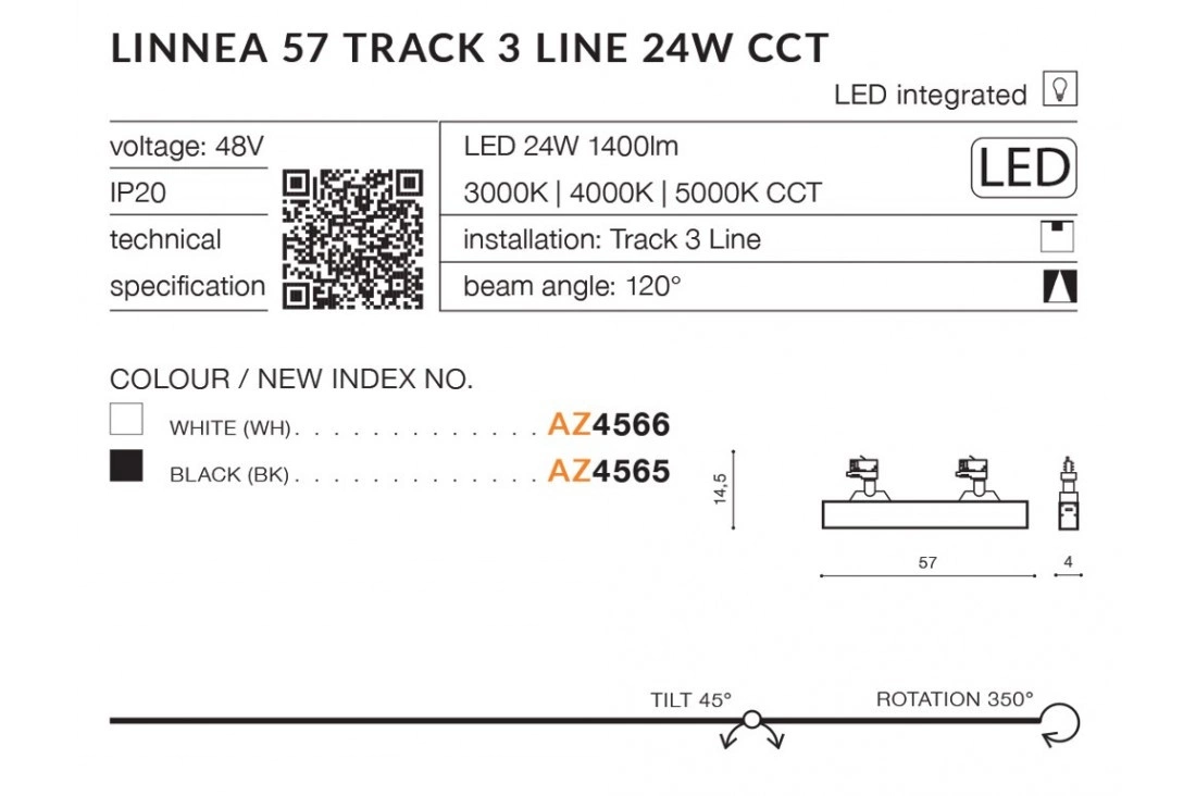 Azzardo LINNEA 57 TRACK 3LINE 24W CCT WH 4566