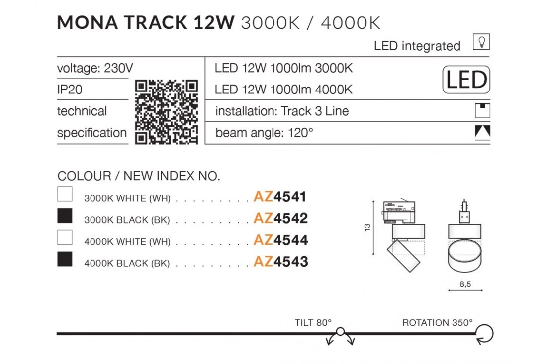 Azzardo MONA TRACK 3LINE 12W 4000K BK 4543