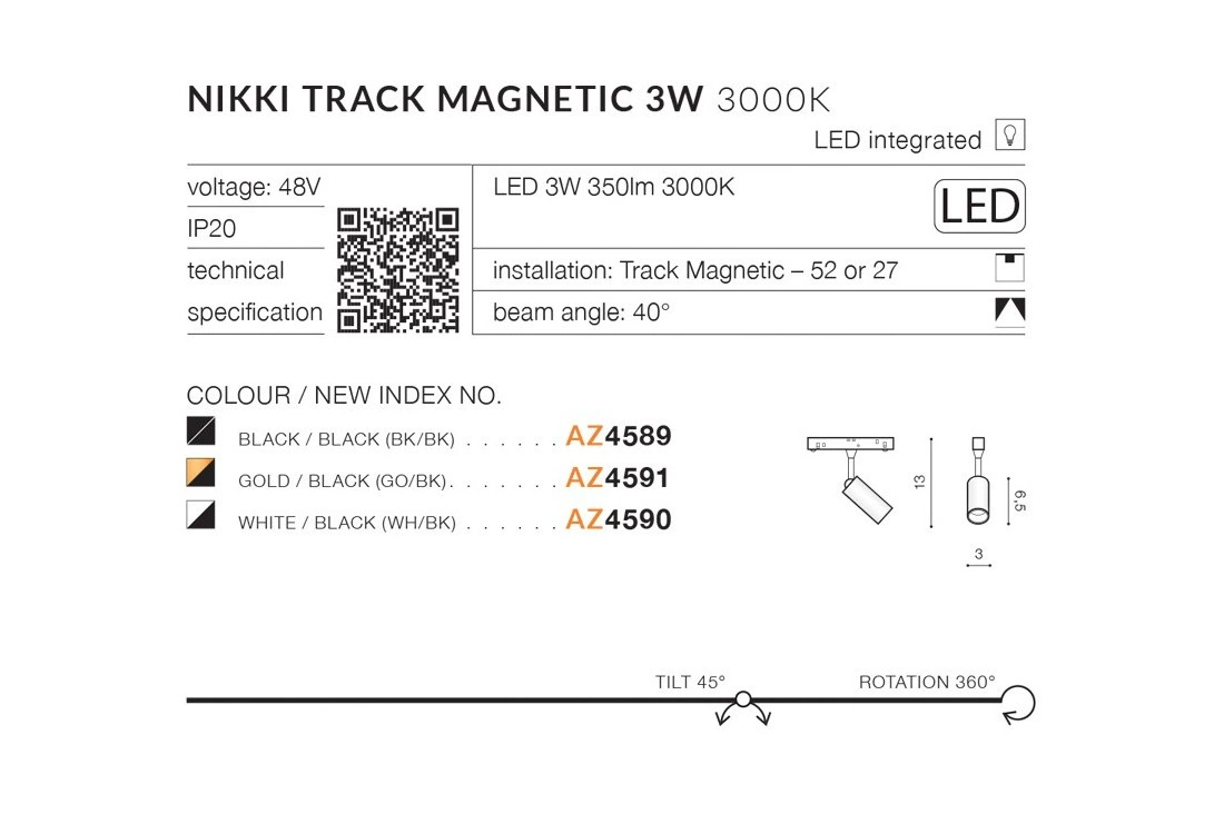 Azzardo ALFA NIKKI TRACK MAGNETIC 3W 3000K WH/BK 4590